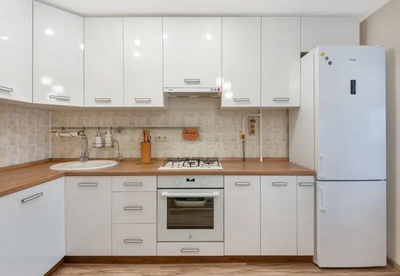 Комплектация: Со встроенными шкафами, Со встраиваемой вытяжкой, Встроенная корпусная мебель, С духовкой, С доводчиками, Со столешницей