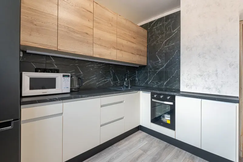 Комплект кухонной мебели ЛММЭ178 "Дуб Галифакс/Высокий глянец AGT 730 Крем" — современное решение для стильного и функционального интерьера. Основные характеристики: - Материал: Пластик и плёнка высокого качества для долговечности и простоты ухода. - Форма: Г-образная, идеально подходит для углового размещения, что экономит полезное пространство. - Стиль: Современный, модерн, минимализм, скандинавский — универсальный дизайн впишется в любой современный интерьер. - Цвет: Светлый тон слоновой кости в сочетании с фактурой под дерево и глянцевыми поверхностями создаёт ощущение уюта и лёгкости. - Размеры: Компактные габариты с длиной 2,4 м обеспечивают эргономику и функциональность. Общая площадь — 10 кв.м. Комплектация: - Фартук: Элегантный дизайн с имитацией текстуры мрамора. - Столешница: Выполнена из прочного пластика Эггер (HPL), устойчивого к влаге и механическим повреждениям. - Включено: Все необходимые элементы для удобного использования — от шкафчиков до качественной столешницы. Применение: Этот комплект станет идеальным решением для кухни в квартире, частном доме или даже на даче. Элегантный дизайн и продуманная функциональность добавят комфорта в быт. Подчёркнутая лаконичность, высокое качество материалов и изысканный стиль сделают вашу кухню практичной и эстетически привлекательной.