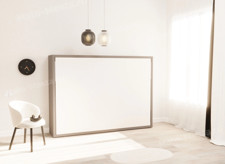 Горизонтальная подъемная кровать Solo – лаконичный вариант кровати-трансформера для длинных узких комнат. Комплект кровати оснащен раскладывающейся от стены кровати и шкафом для "хранения" кровати днем.Основа кровати – стальная рама основания для матраса и стальные детали механизма трансформации.Опорой для кровати служат выпадающие по бокам ножки из стали. Открытие кровати осуществляется за одну из ножек. Особенность конструкции позволяет сохранить фасад гладким и чистым, без дополнительных вмешательств и декоративных элементов. Откидная кровать оборудована складывающимся металлическим изголовьем.Шкаф для кровати оборудован задней стенкой, которая дает возможность установить мягкую панель любой конструкции (выбирать в блоке "Дополнительные опции"), и утолщенным до 44 мм корпусом кровати-трансформера.