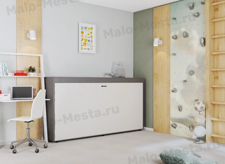 Складная горизонтальная кровать-трансформер Solo состоит из откидной кровати от стены и шкафа для ее "хранения". Идеальный вариант для маленьких детских комнат.В базе кровать оснащена стальной рамой основания для ортопедического матраса и стальными элементами механизма трансформации.Опора кровати-трансформера – перекидная. Открытие кровати за ручку на фасаде.Подъемная кровать для ребенка оснащена металлическим складным изголовьем. Сторона размещения изголовья выбирается в момент оформления заказа.Шкаф для кровати укомплектован задней стенкой, на которую можно поставить декоративные мягкие панели. Верхняя часть шкафа со стороны фасада имеет дополнительную вставку, в которую врезается замок для закрытия кровати на ключ. Данная опция необходима для дополнительной защиты детей.