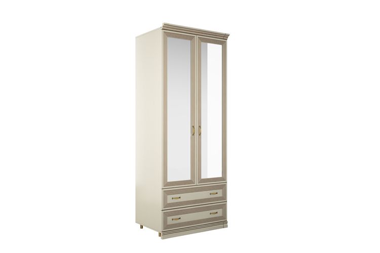 Характеристики:Цвет: валенсия;Цвет внешней фурнитуры: античная бронза;Шкаф укомплектован полками, штангой и 2 выдвижными ящиками;Вверху — отделение с полкой ЛДСП и штангой для навешивания одежды за распашными зеркальными фасадами, внизу — два выдвижных ящика одинакового размера;Максимальная нагрузка в ящик — не более 6 кг;Высота модуля — 223,8 см с учетом высоты лицевого карниза 6,2 см;Дополнительно можно установить 2 полки ЛДСП АГ-011.00 (1 комплект);Если шкаф будет стыковаться с другими прямыми или угловым шкафами, то соединительные элементы не требуются, так как они идут уже в базовой комплектации (необходимо заказать только боковые цоколи и карнизы для завершения композиции);К шкафу, приобретаемому отдельно, нужен еще комплект карнизов Адажио АГ-013.03 (2 шт) и комплект цоколей Адажио АГ-012.03 (1 шт).Материалы:Корпус: ЛДСП;Фасады: рамочные с гребенчатым профилем из МДФ, вставка дверей — зеркало 4 мм, вставка ящиков — ЛМДФ 6 мм;Отделка фасадов выполнена испанским акриловым лаком и патиной (эффект состаренного дерева);Каркас ящиков выполнен из ящичного профиля;Внешняя фурнитура: латунь;Опоры — металлические, регулируемые;Крепежная фурнитура: Titus, Hettich;Петли Тitus с доводчиками.
