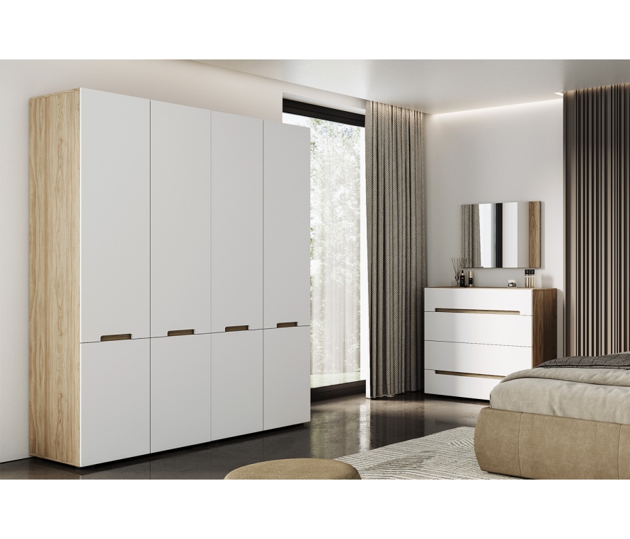 Обратите внимание! Цена за один шкаф. Он представлен на втором фото.Характеристики:Двустворчатый шкаф укомплектован полкой и штангой для одежды;Цвет корпуса: швейцарский вяз;Цвет фасадов: белый матовый;Регулируемые опоры;Cкрытая эргономичная ручка, выполненная посредством фрезеровки фасада;Необходимо крепление шкафа к стене во избежание опрокидывания при открывании двери (в фурнитуре для этого есть крепежный уголок);Дополнительно можно комплектовать полками АН-011.00 (1 или 2 комплекта).Материалы:Корпус: ЛДСП 16 и 22 мм класса эмиссии Е1;Фасады: МДФ 19 мм в пленке ПВХ;Задняя стенка: ДВП;Для облицовывания кромок деталей используется высококачественный материал от ключевых производителей;Крепежная фурнитура и механизмы ведущих производителей;Двери с доводчиками.