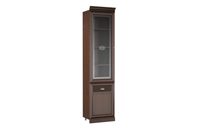 Характеристики:Цвет: клен торонто;Цвет внешней фурнитуры: античная бронза;За стеклянным фасадом — 3 полки из ЛДСП, за распашной глухой дверью — 1 полка из ЛДСП;На стекле — матовый медальон;Нет спила под плинтус;Необходимо крепление шкафа к стене во избежание опрокидывания при открывании двери (в фурнитуре для этого есть крепежный уголок);Двери могут быть установлены с открыванием в любую сторону (для этого на корпусе есть дополнительные отверстия);Лицевой карниз и цоколь уже идет в стандартной комплектации;Может дополнительно комплектоваться 1-м или 2-мя комплектами завершающих колонн ИТ-Б20 (левая или правая) и ИТ-Б21 в зависимости от положения в комнате и в композиции.Материалы:Корпус: ЛДСП;Фасады: рамочные из профиля МДФ со стеклянной вставкой (стекло прозрачное с матировкой) или глухие — ЛДСП с наклеенным профилем МДФ;Фасадные поверхности покрыты ЛКМ для улучшения внешнего вида и повышения эксплуатационных свойств;Для облицовывания кромок деталей используется высококачественный материал производства Германии, Австрии;Регулируемые металлические опоры скрыты декоративным цоколем из профиля МДФ;Крепежная фурнитура и механизмы ведущих производителей (Titus, Hettich);Лицевая фурнитура: ручка-кнопка или скоба производителя Boyard;Петли с доводчиками.