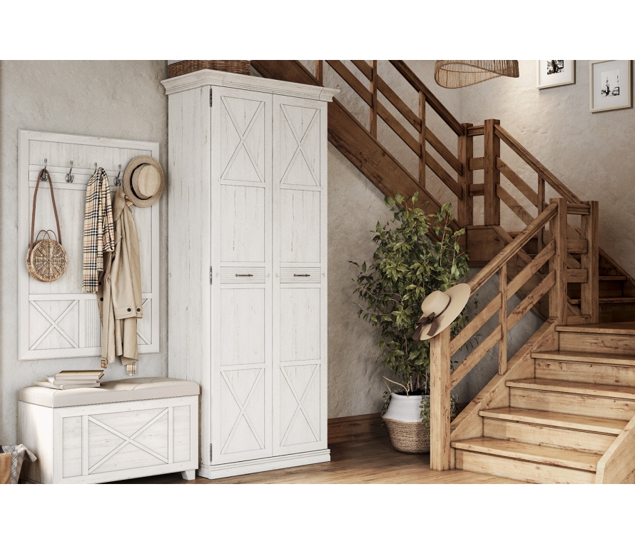 Характеристики:Шкаф 2-дверный с глухими фасадами;Цвет: блан-шене;Отделения шкафа при сборке можно менять местами (собрать в левостороннем варианте — отделение с выдвижной вешалкой слева и правостороннем варианте — отделение с выдвижной штангой справа);Отдельно стоящий шкаф необходимо крепить к стене во избежание опрокидывания.Для отдельно стоящего шкафа необходимо дополнительно покупать комплект боковых цоколей КА-012.04 и комплект боковых карнизов КА-013.24.