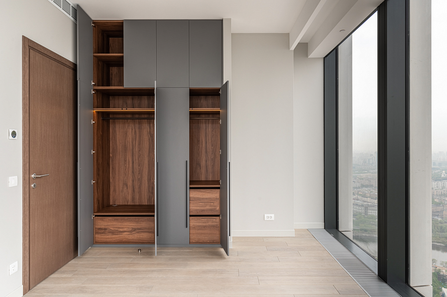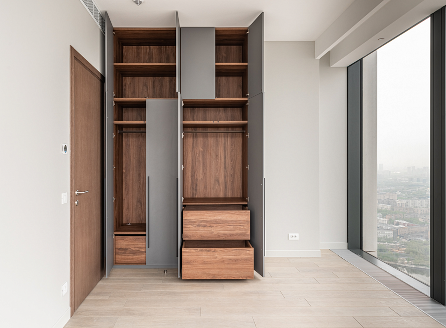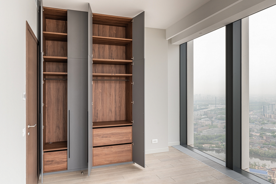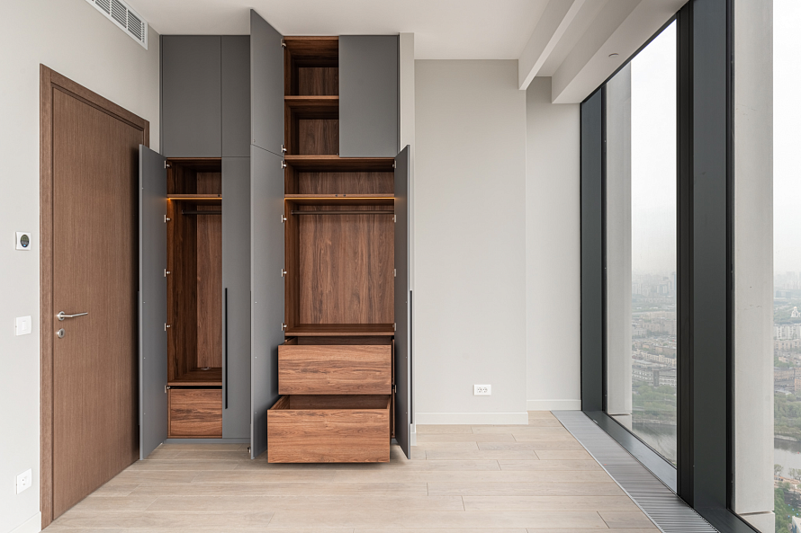 Внутреннее наполнение: ящики, полки, труба горизонтальная, подсветка с датчиком движения