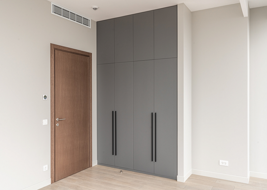 Корпус изделий выполнен из ЛДС Egger в цветовом оттенке Дуб чарльстон темно-коричневый, который напоминает древестину ореха, а фасады выполнены из МДФ Supramat - плиты с самовосстанавливающейся поверхностью. Шкафы оснащены фурнитурой Blum. Функциональным решением является подстветка в виде светодиодной ленты и датчика движения. Посмотреть весь реализованный проект *Указана минимальная стоимость изделия без учета стоимости услуг