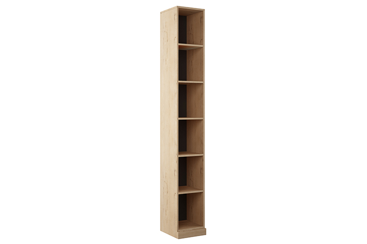 Компактный узкий стеллаж дополнит обстановку в стиле эко, лофт, минимализм, кантри, классика, прекрасно впишется в прихожую или малогабаритную гостиную, поможет оформить рабочий кабинет или детскую комнату. Основной цвет корпуса «дуб бунратти» подчеркивает контрастный оттенок задней внутренней стенки «черный графит». Лаконичный дизайн и небольшие размеры непременно порадуют приверженцев аскетизма, любителей свободного пространства. На высоких полках без труда поместятся книги, документы, канцелярию, аксессуары, награды.Модель хорошо сочетается со шкафами из одноименной коллекции. При отдельном размещении мебели, несмотря на наличие цоколя, ее необходимо крепить к стене во избежание падения. Изделие может быть выполнено в другом цветовом решении. Для покупки товара с доставкой, сборкой, установкой добавьте его в раздел «Корзина» и там же завершите оформление заказа.Характеристики:Стеллаж с внутренним наполнением из полок;Цвет корпуса: дуб бунратти;Цвет задней стенки ДВП: черный графит;Отдельно стоящий шкаф необходимо крепить к стене во избежание опрокидывания.