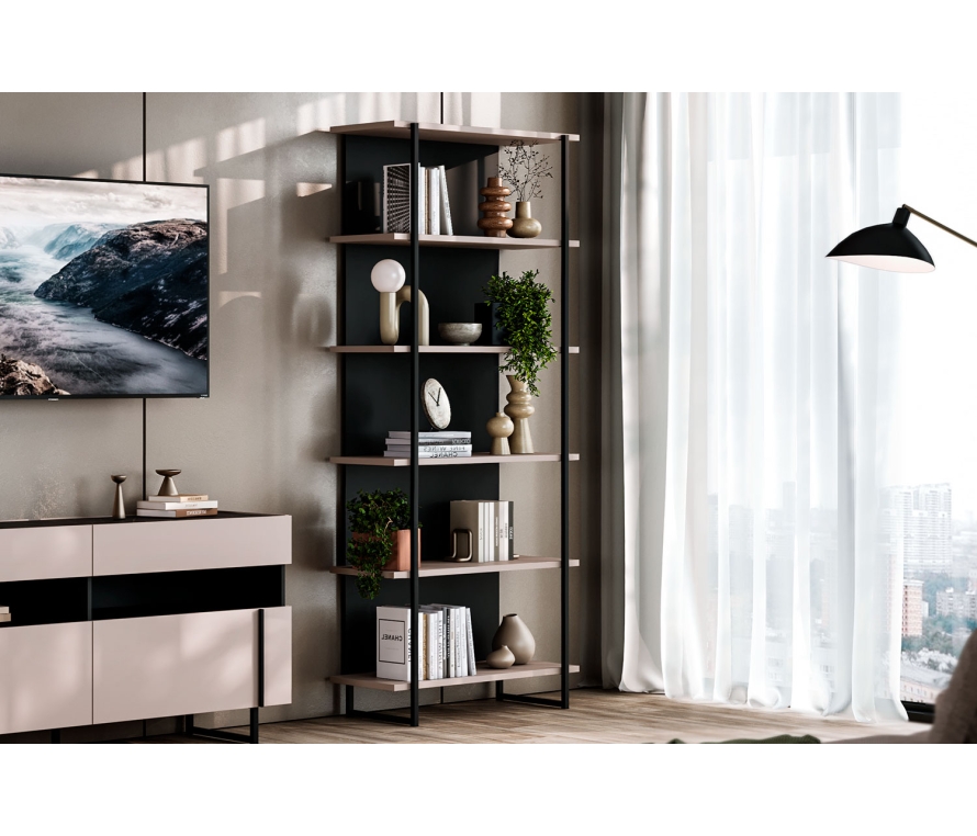 Характеристики:Цвет: кашемир серый, черный графит, черный;Стеллаж с полками;Во избежание опрокидывания модули необходимо крепить к стене;Рекомендована нагрузка на полки и дно ящиков — не более 5-7 кг.Материалы и фурнитура:Корпус: ЛДСП толщиной 16 мм класса эмиссии Е1;Кромочный материал: ПВХ толщиной 0,4 и 2 мм на видимых торцах щитовых деталей, меламиновый — на невидимых;Крепежная фурнитура и механизмы: Titus, Hettiсh.