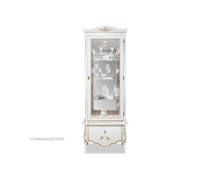 Однодверный правый шкаф с витриной из коллекции «Трио» из массива и шпона дуба порадует любителей основательных и массивных форм, но в то же время – изящества и декоративности. Изделие идеально сочетает в себе эстетику и практичность и идеально впишется как в гостиную, так и в столовую. В шкафу Вы можете хранить посуду, сувениры, расставить рамки с фотографиями или книги. Он оснащен подсветкой, которая красиво отражается в зеркальной задней поверхности, а стеклянные боковые стенки дополняют образ и делают его более легким и изящным. Особенности правого однодверного шкафа с витриной «Трио» 01: ? Витрина изготовлена из массива и шпона дуба. ? Зеркальная задняя стенка и стекла с фацетом (скошенная грань) на дверях создают дополнительную игру света в помещении. ? Стеклянные боковые стенки придают эстетическую легкость витрине. ? Внутренняя подсветка в вечернее время придает уют и очарование гостиной. ? Вы можете не волноваться за посуду, потому что дверца плотно закрывается на ключ и пыль не попадает внутрь. ? Высококачественная лицевая фурнитура Bosetti Marella (пр-ва Италии), ручки в виде лепестков. ? Дверные петли с доводчиками Hettiche (пр-ва Германии) обеспечат плотное и бесшумное закрывание. ? В нижней части витрины вместительный ящик с направляющими Blum (пр-ва Австрии) полного выдвижения и бесшумного закрывания. ? В ящике для деликатных вещей дно отделано велюром. Цвет ткани может разниться в зависимости от изделия. ? Витрина украшена декоративной резьбой. ? Съемные, регулируемые по высоте стеклянные полки. ? Экологичное покрытие - окрашено краской и лаком на водной основе. ? Выпускается в «правом» (петли на дверце справа) и «левом» (петли на дверце слева) исполнении.
