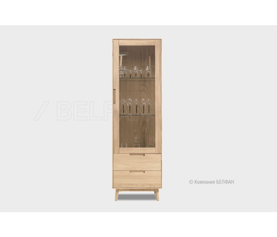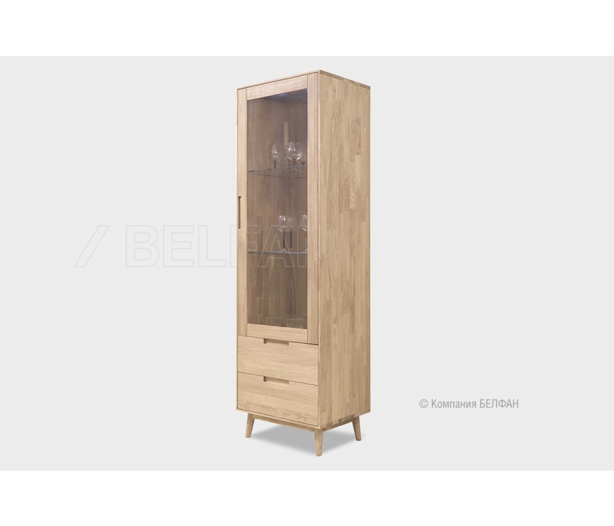 Коллекция мебели «Ирвинг» создана в стиле Mid-century modern, который сочетает простоту форм, функциональность и визуальную лёгкость. Это мебель, которая не перегружает пространство, но при этом задаёт настроение: тёплое, уверенное, элегантное. Шкаф с витриной 1-но дверный «Ирвинг» (правый) - это витрина вашей индивидуальности. Лаконичный корпус на высоких скошенных ножках создаёт эффект парящей лёгкости. Прямая вертикаль и точные пропорции позволяют вписать шкаф даже в небольшие пространства. Прозрачная дверь на всю высоту делает его не только функциональным, но и выразительным элементом интерьера. Функциональные особенности ? Размеры - ширина 600 мм, высота 1950 мм, глубина 450 мм. ? Верхняя секция - за распашной дверью две стеклянные полки (максимальная нагрузка на полку 6кг), отлично подходит для предметов декора, сервиза или посуды. ? Нижняя секция - два вместительных ящика с плавным выдвижением, выдерживающие нагрузку до 20 кг каждый. Подходят для хранения текстиля, журналов, бумаги или личных вещей. ? Три варианта крашения: «беленый дуб», «графит», «бейц-масло». Экологичность и материалы ? Витрина изготовлена из 100% массива дуба - прочного и по-настоящему живого материала. ? Натуральный дуб пропитан экологичным бейц-маслом европейского производства, которое подчёркивает текстуру дуба и сохраняет его естественную красоту. В интерьере Шкаф с витриной «Ирвинг» благодаря универсальному дизайну и натуральному дереву легко встраивается как в скандинавский, так и в современный, эклектичный интерьер. Подчеркните его тёплый характер зелёными растениями, книгами или предметами ручной работы. Рекомендации по сочетанию ? Прекрасно смотрится в составе одноимённой коллекции — рядом с ТВ-тумбой, комодом или консолью. ? Для визуального баланса разместите шкаф у стены, а рядом — светильник с текстильным абажуром или мягкое кресло. ? В интерьере с тёмным полом эффектно будет смотреться светлый белёный дуб, а с белыми стенами — графитовый оттенок. ? Витрину можно использовать и в гостиной, и в домашнем кабинете. Рекомендации от BELFAN: Мы рекомендуем воспользоваться услугой профессиональной сборки от BELFAN — чтобы сохранить гарантию и быть уверенными в точной установке всех элементов. Мебель из массива дерева необыкновенно красива, добротна и славится своим долголетием. Однако, чтобы продлить этот срок, сохранить мебельным изделиям первоначальную элегантность и отличный внешний вид, за ней необходим надлежащий уход. Если у вас появились царапины, следы от кружки или мокрой тряпки, то сервис-бокс от компании BELFAN поможет вам вернуть мебели первозданный вид даже в домашних условиях. Данный сервис-бокс подходит только для мебели в крашении бейц-масло. Скачать схему сборки витрины: Видеообзор гостиная Ирвинг