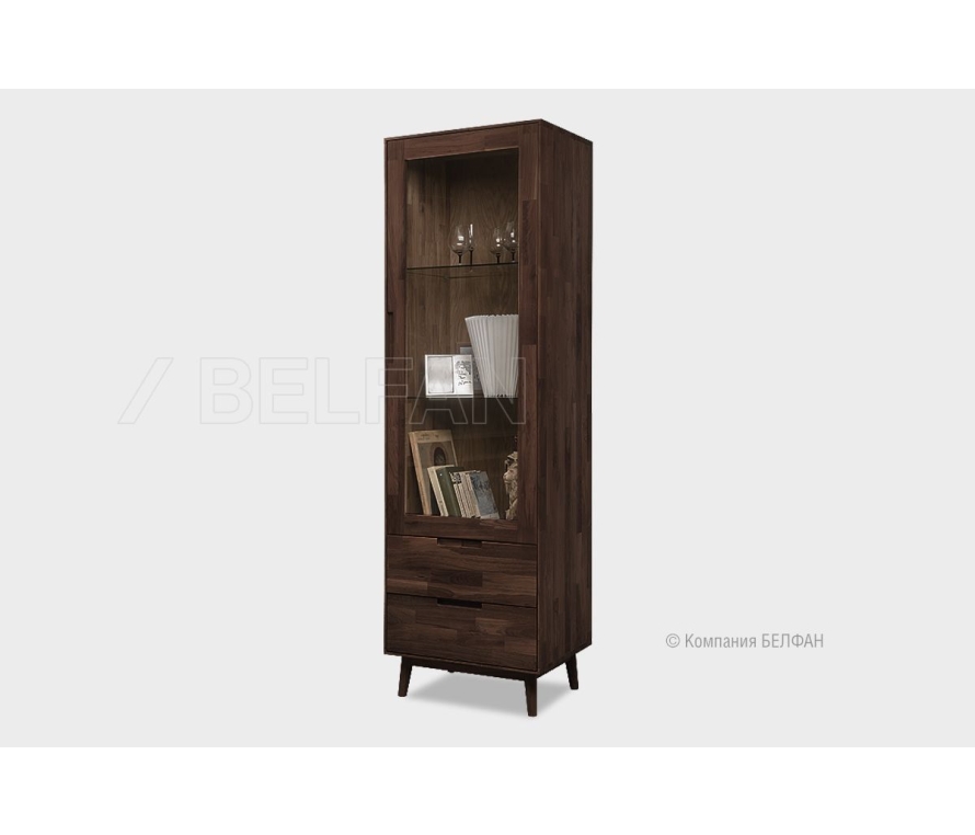 Коллекция мебели «Ирвинг» создана в стиле Mid-century modern, который сочетает простоту форм, функциональность и визуальную лёгкость. Это мебель, которая не перегружает пространство, но при этом задаёт настроение: тёплое, уверенное, элегантное. Шкаф с витриной 1-но дверный «Ирвинг» (правый) - это витрина вашей индивидуальности. Лаконичный корпус на высоких скошенных ножках создаёт эффект парящей лёгкости. Прямая вертикаль и точные пропорции позволяют вписать шкаф даже в небольшие пространства. Прозрачная дверь на всю высоту делает его не только функциональным, но и выразительным элементом интерьера. Функциональные особенности ? Размеры - ширина 600 мм, высота 1950 мм, глубина 450 мм. ? Верхняя секция - за распашной дверью две стеклянные полки (максимальная нагрузка на полку 6кг), отлично подходит для предметов декора, сервиза или посуды. ? Нижняя секция - два вместительных ящика с плавным выдвижением, выдерживающие нагрузку до 20 кг каждый. Подходят для хранения текстиля, журналов, бумаги или личных вещей. ? Три варианта крашения: «беленый дуб», «графит», «бейц-масло». Экологичность и материалы ? Витрина изготовлена из 100% массива дуба - прочного и по-настоящему живого материала. ? Натуральный дуб пропитан экологичным бейц-маслом европейского производства, которое подчёркивает текстуру дуба и сохраняет его естественную красоту. В интерьере Шкаф с витриной «Ирвинг» благодаря универсальному дизайну и натуральному дереву легко встраивается как в скандинавский, так и в современный, эклектичный интерьер. Подчеркните его тёплый характер зелёными растениями, книгами или предметами ручной работы. Рекомендации по сочетанию ? Прекрасно смотрится в составе одноимённой коллекции — рядом с ТВ-тумбой, комодом или консолью. ? Для визуального баланса разместите шкаф у стены, а рядом — светильник с текстильным абажуром или мягкое кресло. ? В интерьере с тёмным полом эффектно будет смотреться светлый белёный дуб, а с белыми стенами — графитовый оттенок. ? Витрину можно использовать и в гостиной, и в домашнем кабинете. Рекомендации от BELFAN: Мы рекомендуем воспользоваться услугой профессиональной сборки от BELFAN — чтобы сохранить гарантию и быть уверенными в точной установке всех элементов. Мебель из массива дерева необыкновенно красива, добротна и славится своим долголетием. Однако, чтобы продлить этот срок, сохранить мебельным изделиям первоначальную элегантность и отличный внешний вид, за ней необходим надлежащий уход. Если у вас появились царапины, следы от кружки или мокрой тряпки, то сервис-бокс от компании BELFAN поможет вам вернуть мебели первозданный вид даже в домашних условиях. Данный сервис-бокс подходит только для мебели в крашении бейц-масло. Скачать схему сборки витрины: Видеообзор гостиная Ирвинг