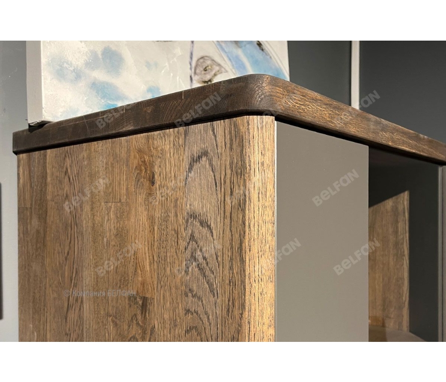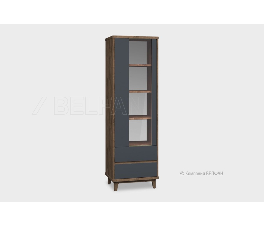 Витрина выполнена в современном стиле Лофт с сочетанием текстуры натурального дерева и акцентных белых вставок. Светлый оттенок изделия придаст помещению атмосферу упорядоченности и спокойствия. Высокий шкаф с витриной отлично подойдет для гостиной или столовой. Особенности однодверного левого шкафа с витриной Wallstreet (Уолстрит): ? Полки из массива дуба визуально подчеркивают натуральность и надежность изделия. Благодаря деревянным полкам в витрине можно хранить книги, ставить вазы и не беспокоиться об излишней нагрузке полок. ? Два удобных ящика оснащены надежными шариковыми направляющими с доводчиками, которые обеспечат плавное и бесшумное закрывание. ? Дверцы витрины оснащены качественными петлями с доводчиками, которые обеспечивают плавное и бесшумное закрывание. ? Витрина изготовлена из комбинации материалов - массива дуба и эмали. Из массива дуба изготовлен корпус, фасады и вставки в цвете «бейц-масло», «белёный дуб», «серый дуб», «графит». ? Массив дуба покрыт только натуральным бейц-маслом, которое защищает древесину от внешнего воздействия и придаёт ей приятный медовый оттенок. На поверхности образуется защитная гидрофобная пленка, благодаря которой покрытие впитывается в структуру дерева, но не оставляет следов на одежде или предметах, которые контактируют с поверхностью. ? Благодаря высоте ножек под витриной удобно проводить влажную уборку для предотвращения скопления пыли. ? Легкая и воздушная витрина визуально расширит пространство. Скругленные углы визуально придают мягкость формам. Мебель из массива дерева необыкновенно красива, добротна и славится своим долголетием. Однако, чтобы продлить этот срок, сохранить мебельным изделиям первоначальную элегантность и отличный внешний вид, за ней необходим надлежащий уход. Если у вас появились царапины, следы от кружки или мокрой тряпки, то сервис-бокс от компании BELFAN поможет вам вернуть мебели первозданный вид даже в домашних условиях. Данный сервис-бокс подходит только для мебели в крашении бейц-масло. Схема шкафа с витриной Wallstreet 1дв.: Видеообзор гостиная Wallstreet