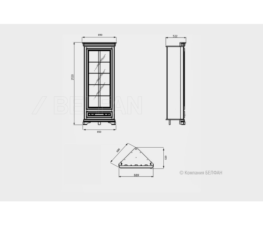 Угловой шкаф с витриной из коллекции «Оливия» порадует любителей прямых и лаконичных форм. Высокий многослойный карниз, фигурный цоколь, червоточины и тёмная патина – всё это наполнит ваш интерьер оригинальностью и роскошью. Шкаф оснащен подсветкой, которая эстетично отражается в зеркальной задней стенке и создает дополнительную игру света. Шкаф обладает легкостью и способен привнести в любой интерьер воздушность и нежность. Особенности угловой витрины «Оливия»: ? Угловая витрина выполнена из массива и шпона ольхи. ? Внутренняя подсветка придает уют и очарование гостиной. ? Зеркальная задняя стенка создает дополнительную игру света в помещении. ? Вместительный ящик с направляющими (пр-ва Австрии) полного выдвижения и бесшумного закрывания. ? В ящике для деликатных вещей дно отделано велюром. Цвет ткани может разниться в зависимости от изделия. ? Высококачественная лицевая фурнитура Bosetti Marella (пр-ва Италии). ? Экологичное покрытие - окрашено краской и лаком на водной основе. Схема витрины: