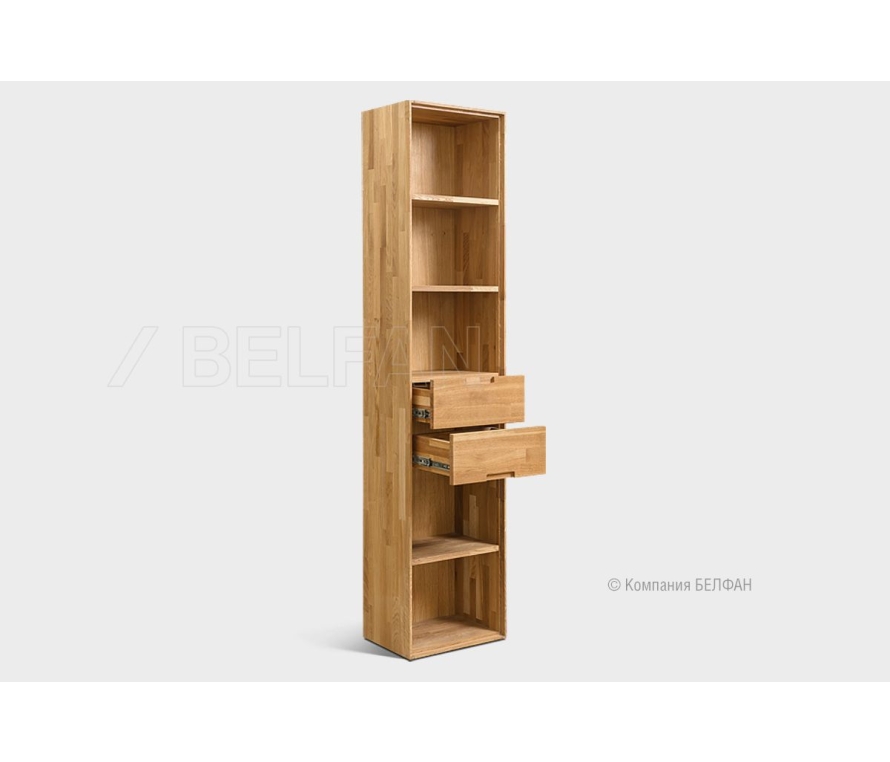 Стеллаж Wallstreet (с ящиками) выполнен в современном стиле Лофт с сочетанием текстуры натурального дерева и акцентных вставок. Светлый оттенок изделия придаст помещению атмосферу упорядоченности и спокойствия. Высокая тумба идеально подходит для гостиной и спальни. Особенности стеллажа Wallstreet (Уоллстрит): ? Стеллаж изготовлен из комбинации материалов - массива дуба и эмали. Из массива дуба изготовлен корпус и фасады в цвете «бейц-масло», «белёный дуб», «серый дуб», «графит». . ? Массив дуба покрыт только натуральным бейц-маслом, которое защищает древесину от внешнего воздействия и придаёт ей приятный медовый оттенок. ? Стеллаж оснащен двумя выдвижными ящиками. ? Благодаря высоте ножек под стеллажом удобно проводить влажную уборку для предотвращения скопления пыли. ? Легкая и воздушная тумба визуально расширит пространство. Скругленные углы визуально придают мягкость формам. Мебель из массива дерева необыкновенно красива, добротна и славится своим долголетием. Однако, чтобы продлить этот срок, сохранить мебельным изделиям первоначальную элегантность и отличный внешний вид, за ней необходим надлежащий уход. Если у вас появились царапины, следы от кружки или мокрой тряпки, то сервис-бокс от компании BELFAN поможет вам вернуть мебели первозданный вид даже в домашних условиях. Данный сервис-бокс подходит только для мебели в крашении бейц-масло.