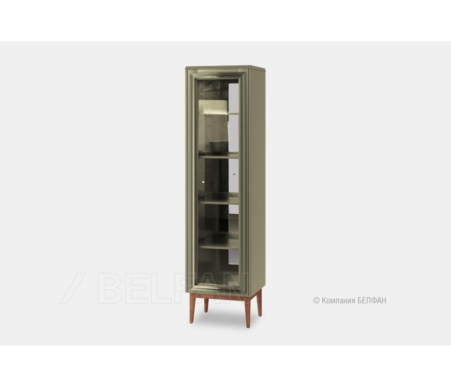 Коллекция «Сакраменто» создана для тех, кто ценит гармонию современного дизайна и классических форм. Четкие линии, выразительная лицевая фурнитура, глубокие и сложные оттенки крашений делают мебель этой серии центром внимания в интерьере. Высокие ножки создают ощущение легкости, а рамочные фасады с багетными накладками придают изделию статусность и глубину. Витрина 1-но дв. «Сакраменто» (левая) — воплощение сдержанной элегантности. Пропорциональный корпус с аккуратным фасадом, обрамленным рельефной рамкой, подчеркивает внимание к деталям. Высокие изящные ножки из массива дуба придают витрине утонченность и визуально «поднимают» её над полом, облегчая восприятие мебели в интерьере. Зеркальная задняя стенка добавляет глубины, а встроенная светодиодная подсветка мягко освещает содержимое. Функциональные особенности ? При ширине 555 мм, высоте 2055 мм и глубине 455 мм витрина идеально подходит как для компактных пространств, так и для просторных гостиных. ? Внутри — четыре вместительные полки для декоративных ваз, бокалов, фарфора или коллекционных предметов. ? Зеркальная задняя стенка усиливает эффект экспозиции, а подсветка подчеркивает каждый элемент. ? Подсветка включается и выключается движением в нижней части витрины. ? Два варианта крашения: марципан, орех и сумеречный, орех позволяют подобрать решение под любое стилевое решение комнаты. Экологичность и материалы ? Багетная рама (декор на фасадах), ножки и царговый пояс изделия изготовлены из массива дуба. ? Корпус изделия изготовлен из шпонированного дубом МДФ класса безопасности Е1. ? В покрытии изделия используются краски на водной основе и масло из натуральных компонентов, что свидетельствует о безопасности и соответствует высоким стандартам качества. В интерьере Витрина легко станет центром притяжения в гостиной или даже в домашнем кабинете. В светлом оттенке «марципан» она добавит тепла и уюта, а в цвете «сумеречный» — создаст эффект глубины и благородства. Можно использовать пару витрин — левую и правую, разместив их по бокам от комода или ТВ-тумбы из той же коллекции. Рекомендации по сочетанию ? Идеально комбинируется с другими предметами коллекции «Сакраменто» — тумбами, витринами, навесными шкафами и стеллажами. ? Для гармоничного образа можно дополнить интерьер мягкой мебелью в спокойных тонах коллекции BELFAN, текстилем из натуральных тканей и аксессуарами с металлическими элементами. Рекомендации от BELFAN Мы рекомендуем воспользоваться услугой профессиональной сборки от BELFAN — чтобы сохранить гарантию и быть уверенными в точной установке всех элементов. Схема витрины однодверной: