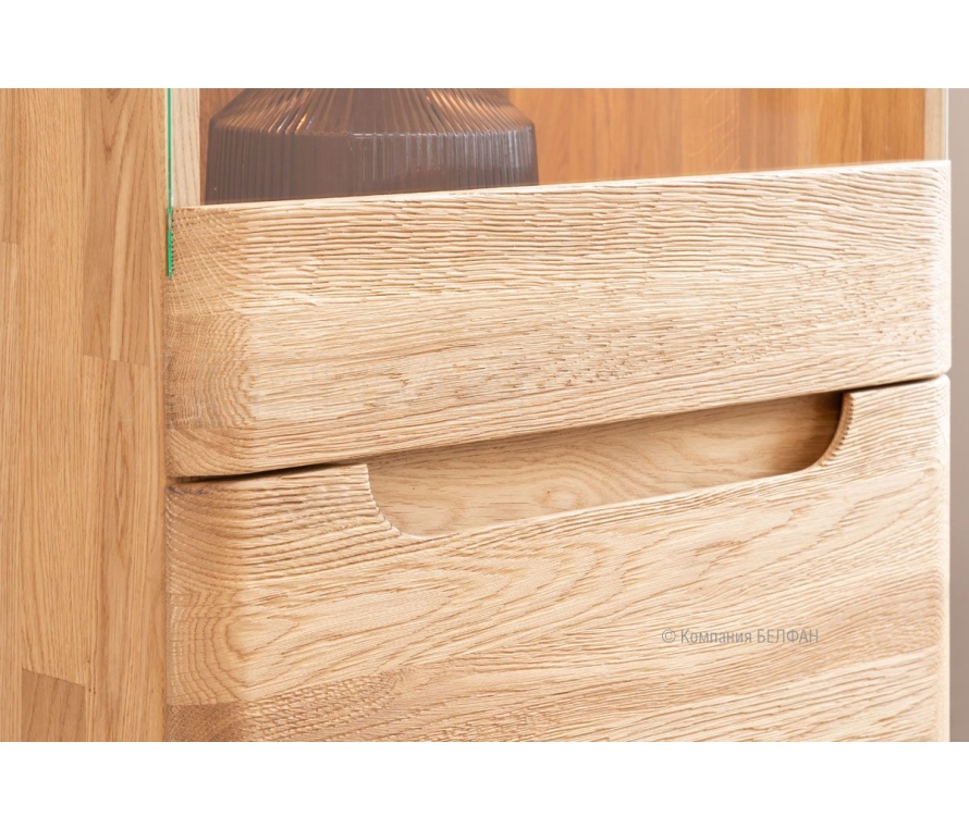Коллекция «Bremen» («Бремен») вдохновлена природной красотой и честностью натурального дуба. Мы создаём мебель, которая подчёркивает индивидуальность интерьера, оставаясь при этом сдержанной, лаконичной и глубокой. Каждое изделие — это симфония древесной текстуры, строгой геометрии и тёплой тактильности. Правая однодверная витрина «Bremen» — функциональный акцент, созданный для тех, кто любит сочетание открытости и уюта. Это изделие идеально подойдёт для оформления зоны гостиной, кабинета или спальни в качестве места хранения предметов, которыми хочется любоваться. Функциональные особенности: ? Размеры: ширина 532 мм, высота 1970 мм, глубина 400 мм — подходит даже для компактных пространств. ? Стеклянные полки и нижняя полка из массива дуба регулируются по высоте для удобного хранения посуды или любимого декора. ? Максимальная нагрузка на стеклянную полку 5 кг. ? Стеклянная дверь и открытая внутренняя часть с полками создают ощущение лёгкости и визуального простора. ? Витрина оснащена подсветкой, которая создаёт мягкое освещение, подчёркивая содержимое и добавляет атмосферности. Экологичность и материалы: ? Материал: 100% массив дуба — прочность, надежность и природная эстетика. ? Покрытие: итальянское паркетное масло Borma сохраняет и подчеркивает естественную структуру древесины. ? Цвета: натуральный дуб и дуб тёмный — два характера на выбор. ? Каждый сантиметр дерева обрабатывается вручную, брашируется и покрывается безопасным маслом, что делает мебель максимально дружелюбной к дому и семье. В интерьере Эта витрина особенно гармонично смотрится в паре с левой витриной Bremen, создавая симметрию и акцент в комнате. Можно использовать как самостоятельный элемент или в композиции с комодом или тумбой из той же коллекции. Рекомендации по сочетанию: ? Внутри коллекции: идеальна в дуэте с витриной левой, комодом или кроватью Bremen. ? С другими коллекциями BELFAN: комбинируется с коллекцией Wallstreet — для тех, кто любит сложные природные интерьеры. ? Дополнения: вазы из матового стекла и книги в светлых обложках подчеркнут стиль изделия. Рекомендации от BELFAN Витрина поставляется в собранном виде. Для удобства транспортировки рекомендуется проверить ширину дверных проемов. Схема витрины: