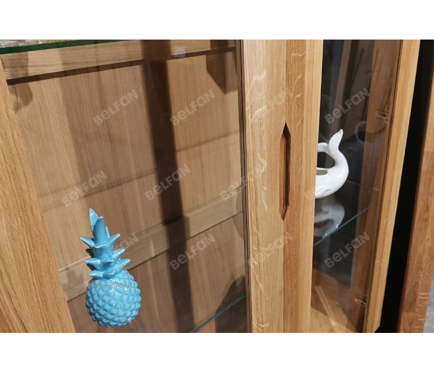 Мебель для гостиной Elva(«Эльва») понравится тем, кто не любит вычурность, множество деталей. Что-то свое в ней найдут сторонники и классики, и современности. Она для тех, кто ценит простоту, комфорт и пространство. Особенности Витрины 2-х дверной Elva: ? Ультрамодный дизайн в стиле Mid-century modern (стиль 50-ых – 70-ых годов). ? Вместительная витрина с уникальным дизайном - идеальное решение для вашей гостиной! ? Витрина оснащена двумя дверцами, внутри расположены две стеклянные полки. На ящиках установлены направляющие GTV шариковые с доводчиками, петли с доводчиком фирмы «Boyard»; ? Витрина изготовлена из массива и шпона дуба. ? Изделие покрыто бейц-маслом – экологичным составом из натуральных компонентов. Мебель из массива дерева необыкновенно красива, добротна и славится своим долголетием. Однако, чтобы продлить этот срок, сохранить мебельным изделиям первоначальную элегантность и отличный внешний вид, за ней необходим надлежащий уход. Если у вас появились царапины, следы от кружки или мокрой тряпки, то сервис-бокс от компании BELFAN поможет вам вернуть мебели первозданный вид даже в домашних условиях. Данный сервис-бокс подходит только для мебели в крашении бейц-масло. Гостиная «Elva», видеообзор | БЕЛФАН