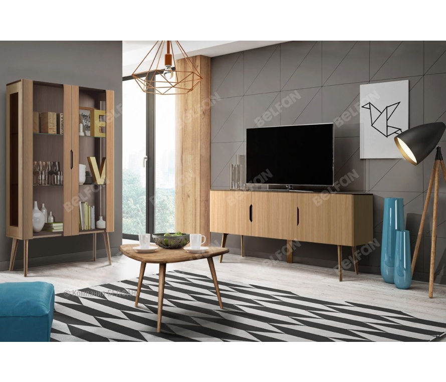 Мебель для гостиной Elva(«Эльва») понравится тем, кто не любит вычурность, множество деталей. Что-то свое в ней найдут сторонники и классики, и современности. Она для тех, кто ценит простоту, комфорт и пространство. Особенности Витрины 2-х дверной Elva: ? Ультрамодный дизайн в стиле Mid-century modern (стиль 50-ых – 70-ых годов). ? Вместительная витрина с уникальным дизайном - идеальное решение для вашей гостиной! ? Витрина оснащена двумя дверцами, внутри расположены две стеклянные полки. На ящиках установлены направляющие GTV шариковые с доводчиками, петли с доводчиком фирмы «Boyard»; ? Витрина изготовлена из массива и шпона дуба. ? Изделие покрыто бейц-маслом – экологичным составом из натуральных компонентов. Мебель из массива дерева необыкновенно красива, добротна и славится своим долголетием. Однако, чтобы продлить этот срок, сохранить мебельным изделиям первоначальную элегантность и отличный внешний вид, за ней необходим надлежащий уход. Если у вас появились царапины, следы от кружки или мокрой тряпки, то сервис-бокс от компании BELFAN поможет вам вернуть мебели первозданный вид даже в домашних условиях. Данный сервис-бокс подходит только для мебели в крашении бейц-масло. Гостиная «Elva», видеообзор | БЕЛФАН