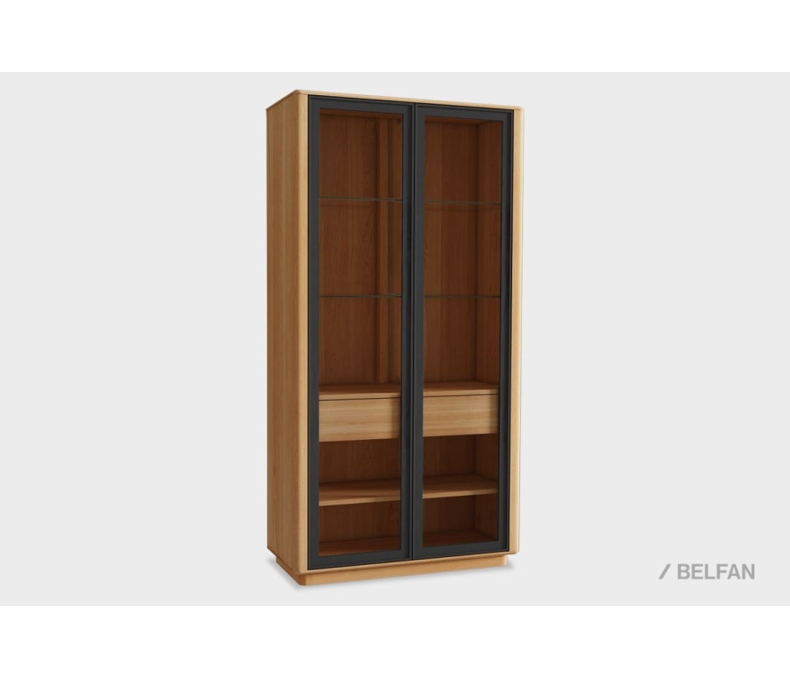 Коллекция «Меридиан» создана как дань искусству современной мебели — где каждое изделие становится частью утончённого интерьера. Фасады, вдохновлённые драпировкой атласа, изысканная позолоченная фурнитура и высокие ножки создают ощущение лёгкости и эстетической завершённости. Гармония фактур массива дуба и мягких матовых оттенков превращает каждую комнату в пространство индивидуального стиля и комфорта. Двухдверная витрина «Меридиан» — это не просто система хранения, а изящный акцент, который открывает интерьеру дыхание утончённой симметрии. Стеклянные фасады мягко пропускают свет, подчёркивая красоту внутреннего наполнения — от книг до коллекционного фарфора. Модель представлена в широкой палитре пастельных и древесных оттенков, что позволяет тонко настроить витрину под настроение пространства. Функциональные особенности: ? Размеры: ширина 980 мм, высота 1920 мм, глубина 422 мм. ? За каждой распашной дверцей расположены 4 вместительные полки. ? Устойчивые ножки высотой 170 мм придают конструкции лёгкость. ? Ручки с матовым золотом — стильный и деликатный штрих. ? Витрина оснащена подсветкой, которая включается и выключается движением в нижней части витрины, задняя стенка украшена зеркалом. ? Возможны разные комбинации отделок корпуса и фасадов. Экологичность и материалы ? Витрина изготовлена из массива дуба в сочетании с МДФ. ? Покрытие витрины выполнено с применением красок на водной основе и натурального масла, которое подчёркивает текстуру дуба и сохраняет природную теплоту древесины. В интерьере Витрина органично вписывается как в современные, так и в неоклассические интерьеры. Подходит как для современной столовой, так и для уютной гостиной или кабинета. Рекомендации от BELFAN: Для визуальной симметрии можно дополнить интерьер второй витриной или оформить композицию с зеркалом и консолью. Установка производится на выровненную поверхность, изделие поставляется в собранном виде, дополнительной сборки не требуется. Схема витрины: