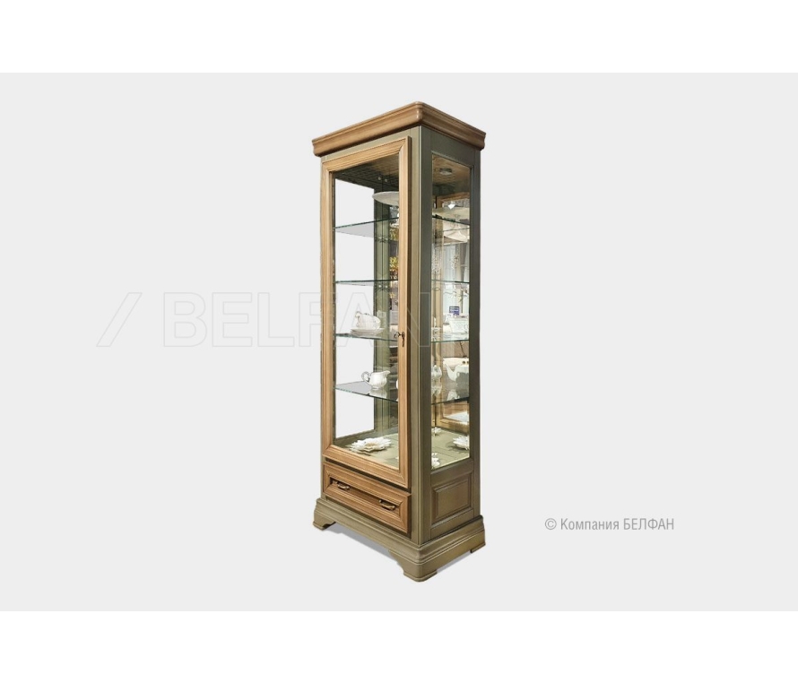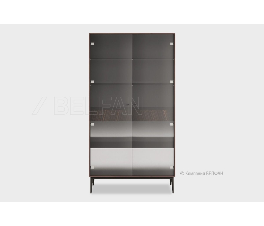 Особенности двухдверной витрины «Монреаль» (Monreal): ? Современный минималистичный дизайн с функциональным использованием. ? Утонченный корпус изделий. ? Высокие изящные металлические ножки. ? В витрине установлена подсветка, которая включается и выключается движением в нижней части витрины. ? Задняя стенка витрины украшена зеркалом. ? Двери витрины выполнены из стекла в цвете графит. ? Корпус изготовлен из шпонированного дубом МДФ класса безопасности Е1. ? Покрытие выполнено европейским экологически чистым матовым лаком, что делает мебель максимально безопасной для здоровья, а так же подчеркивает красоту натурального дерева. ? Европейские петли и направляющие с доводчиками дают ежедневный комфорт использования. Схема витрины:
