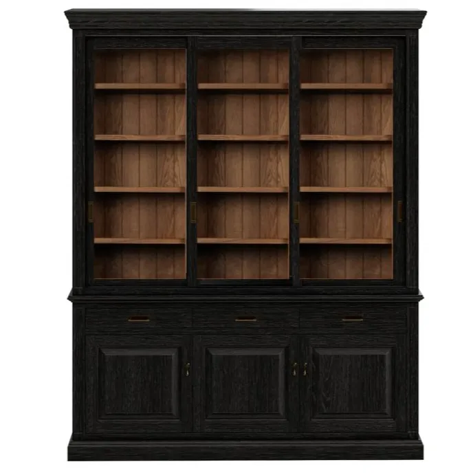 Размер: 2020 х 480 х 2500 Коллекция мебели TIMELESS и TIMELESS Light — линейка корпусной мебели из массива и натурального шпона ясеня в стиле современной классики. Изготавливается в нескольких цветовых вариантах выкраса, в морилке или эмали с фактурой дерева.* На фото: Трехсекционная витрина с откатными дверцами выполнена из массива вяза и шпона вяза, выкрашена в морилку черного цвета с сохранением фактуры дерева. *Информацию по наличию мебели, цвету морилки (эмали) и цвету фурнитуры можно уточнить в любом ближайшем салоне, по телефону или оформив предварительный заказ на сайте.