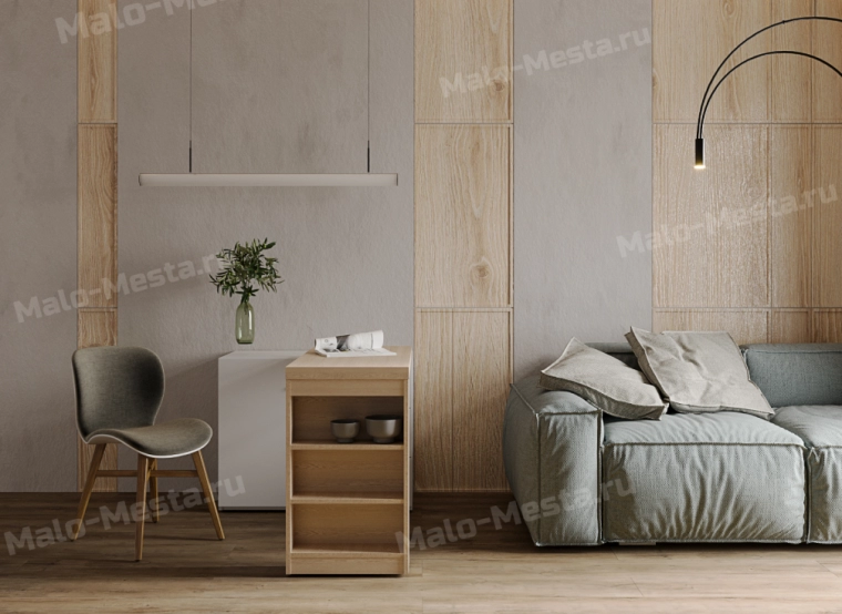 Короткий стол-трансформер Studio – это выкатная столешница и небольшой комод в одном комплекте. "Крыло" столешницы может располагаться вдоль комода, так стол-трансформер считается сложенным, или выкатываться перпендикулярно комоду, так стол считается разложенным.В вертикальной опоре для столешницы размещены открытые полки. Столешница комплектуется колесиками для легкой и быстрой трансформации в стол и обратно.Столешница Studio 1/2 может открываться как влево, так и вправо, в зависимости от места установки. Вариант открытия необходимо выбрать заранее и согласовать с менеджером, эта опция не требует доплаты.Комод стола-трансформера Studio 1/2 разделен на 2 секции: одна секция – это 3 выкатных ящика, вторая – это 2 закрытые фасадом полки.