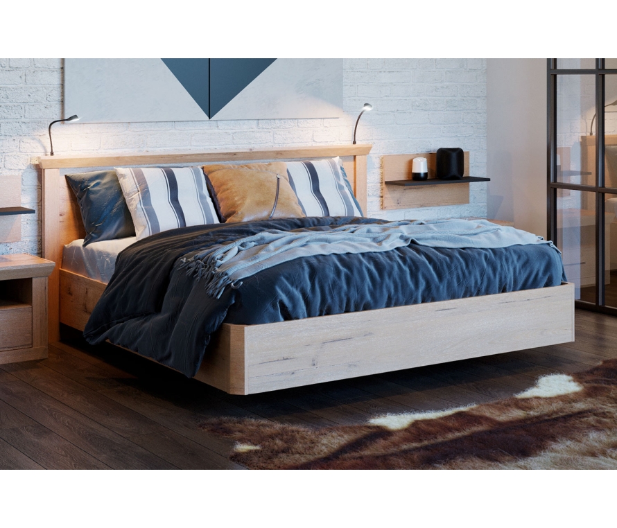 Характеристики:Кровать без подъемного механизма;Цвет: дуб бунратти;Размер спального места: 180 х 200 см;Максимально допустимая нагрузка на одно спальное место — 120-150 кг (в зависимости от вида кроватного основания);Матрас в стоимость не входит и приобретается отдельно.