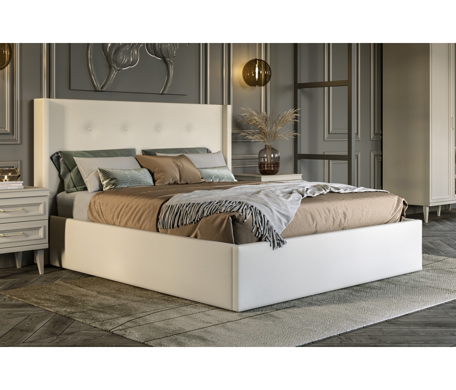 Продуманный дизайн двуспальной модели обеспечит качественный ночной отдых, а мягкое изголовье позволит максимально расслабиться перед сном. Обивка из износостойкой ткани с эластичным наполнением гарантирует безопасность эксплуатации мебели — хозяевам больше не придется волноваться об острых углах в темноте.Микровелюр отличается устойчивостью к износу и истиранию, высокой прочностью и долговечностью, а также простотой в уходе. Лаконичное оформление разбавлено декоративными пуговицами и выступающими элементами изголовья. Отделка универсального ярко-серого позволяет вписать кровать практически в любой интерьер.Каркас изделия изготовлен из ламинированной ДСП. В комплект входит основание из металлической рамы, оснащенной упругими латами, которые придают спальному месту ортопедические свойства. Конструкция также снабжена подъемником и просторным ящиком для белья.Характеристики:Кровать с подъемным механизмом и ящиком для белья;Размер спального места: 160 х 200 см;Максимально допустимая нагрузка на одно спальное место — 120-150 кг (в зависимости от вида кроватного основания);Детали кровати обтянуты тканью (микровелюр Avelina 9534);Изголовье декорировано пуговицами.
