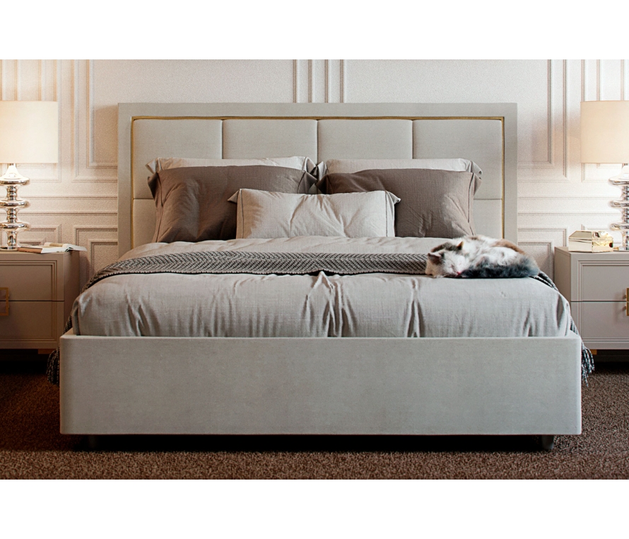 Мебель из коллекции «Дольче» сочетает в себе признаки эклектики, ар-деко иминимализма. Двуспальная просторная кровать выглядит престижно и элегантно. Основная повторяющаяся в дизайне геометрическая форма — квадрат.Обивка стильного оттенка «серый кашемир» выполнена из практичного и износостойкого микровелюра. Высокое изголовье простегано декоративной строчкой, украшено по периметру золотой окантовкой. Каркас изделия изготовлен из ламинированной ДСП. Мягкая отделка сводит риск травматизации в ночной атмосфере спальни к минимуму. Упругие ламели ложа обладают ортопедическим эффектом. Металлические ножки-опоры окрашены порошковой краской в серый цвет.Купить модную кровать, подобрать к ней матрас и сопутствующее окружение с аналогичным дизайном можно в интернет-магазине производителя «Ангстрем». Нашим клиентам доступны также доставка и сборка мебели с установкой.Характеристики:Кровать без подъемного механизма;Размер спального места: 140 х 200 см;Обивка: микровелюр Simple 29;Максимально допустимая нагрузка на одно спальное место — 120-150 кг;Матрас в стоимость не входит и приобретается отдельно.