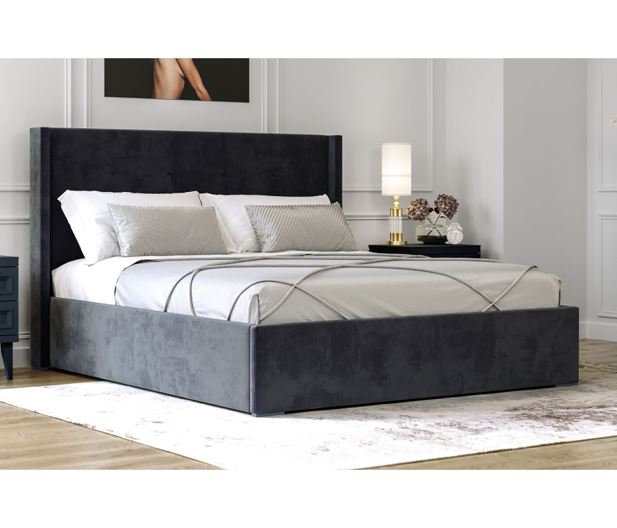 Характеристики:Кровать без подъемного механизма;Размер спального места: 160 х 200 см;Максимально допустимая нагрузка на одно спальное место — 120-150 кг (в зависимости от вида кроватного основания);Детали кровати обтянуты тканью Avelina (9852);Изголовье декорировано пуговицами.