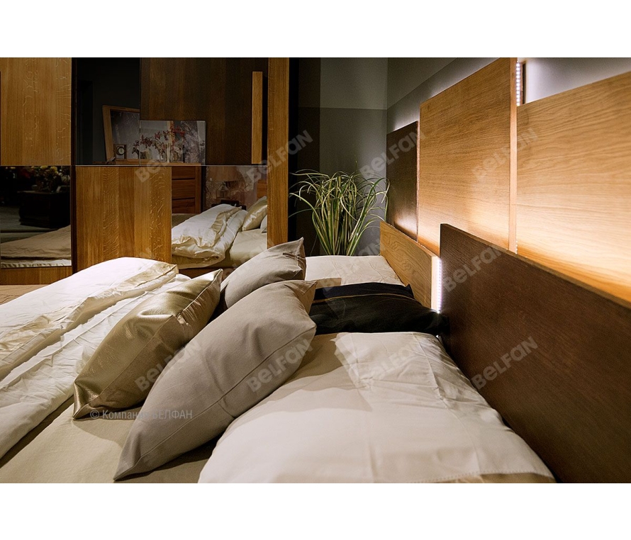 В кровати «Берген» 160 (с подсветкой) идеально проявились свойственные скандинавам обстоятельность и любовь к природе. Мебель из шпона дуба пропитана исключительно бейц-маслом, защищающим ее от влаги, УФ-излучения и различных загрязнений. Низкое изножье позволяет подойти к кровати с трех сторон, а невысокая спинка дает возможность поставить кровать в помещении с ограниченной высотой потолков, к примеру, в мансарде. Чистота линий и материалов должна поддерживаться чистотой в помещении: этого легко достичь, благодаря высоте ножек кровати, которая позволяет без трудностей проводить влажную уборку. Особенности кровати «Берген» (Bergen) 160 (с подсветкой): ? Спальное место шириной 160 см позволит очень комфортно разместиться во время сна. ? Кровать можно доукомплектовать бельевым ящиком с подъемным механизмом, что очень удобно для хранения вещей, а также может послужить заменой комода (в небольших комнатах) или дополнением к нему. ? Низкое изножье позволяет подойти к кровати с трех сторон. ? Из-за невысокой спинки кровать можно поставить к стене с ограничениями по высоте (комната-мансарда). ? Светодиодная подсветка изголовья кровати. ? Высота ножек позволяет легко проводить влажную уборку, а чистота и свежесть в спальне очень важны. ? Экологичная отделка: натуральный дуб пропитан только бейц-маслом (европейского пр-ва), которое наносится вручную. На поверхности образуется защитная гидрофобная пленка, благодаря которой покрытие впитывается в структуру дерева, но не оставляет следов на одежде или предметах, которые контактируют с поверхностью. ? Вы можете скачать схему размещения панелей изголовья. ? Кровать не комплектуется ортопедическим основанием и матрасом, следовательно, можно подобрать его индивидуально под запрос, учитывая степень жесткости и нагрузку. Выбрать и купить ортопедическое основание и матрас можно на данной странице в разделе «Вам также пригодится» или на сайте в разделе «Сопутствующие товары». Также вы можете установить бельевой ящик. Получается вместительный и удобный «шкаф» под кроватью. Не занимает места, позволяет легко получить доступ к вещам, так как легко поднимается. Угол открывания подъёмного механизма 36 градусов! Разные сезонные вещи: чемоданы, детские игрушки, запасные одеяла и многое другое прекрасно разместится в нем. Функционален, практичен и, с экономической стороны, полностью оправдывает вложения. Рекомендации по подбору оттенка бельевого ящика: * Цвет Кровати «Бейц-масло» - Цвет Бельевого ящика «Дуб 430/1» Рекомендуемая высота бельевого ящика – Бельевой ящик «Комфорт», h=275 мм Предложение по подбору цвета являются условными. Вы вправе выбрать другое цветовое решение, основываясь на свой вкус. Мебель из массива дерева необыкновенно красива, добротна и славится своим долголетием. Однако, чтобы продлить этот срок, сохранить мебельным изделиям первоначальную элегантность и отличный внешний вид, за ней необходим надлежащий уход. Если у вас появились царапины, следы от кружки или мокрой тряпки, то сервис-бокс от компании BELFAN поможет вам вернуть мебели первозданный вид даже в домашних условиях. Данный сервис-бокс подходит только для мебели в крашении бейц-масло. Скачать схему сборки кровати: Видеообзор кровать Берген с подсветкой