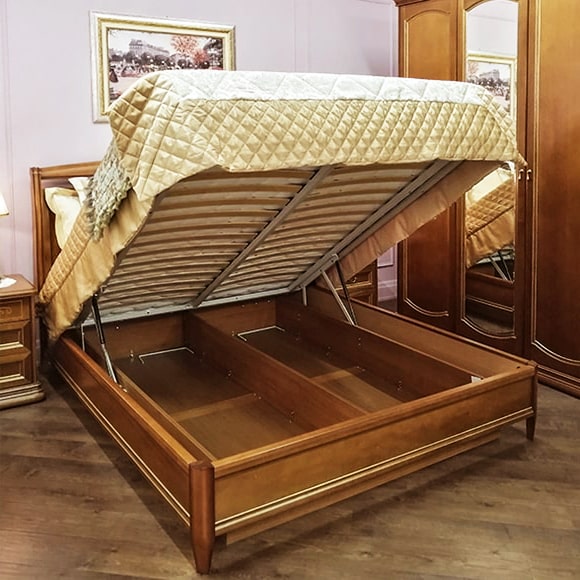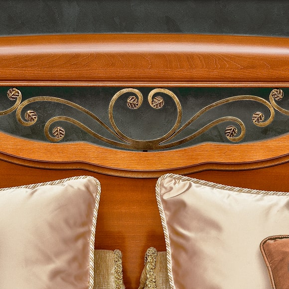 Двуспальная кровать выполнена с использованием массива бука и шпона анегри в прозрачной отделке с золотом. Головная спинка декорирована кованым элементом. Стоимость кровати указана без учета матраса и ортопедического основания. При необходимости, кровать может быть дополнена подъемным механизмом и бельевым ящиком. Габаритный размер указан по максимально выступающим частям изделия.