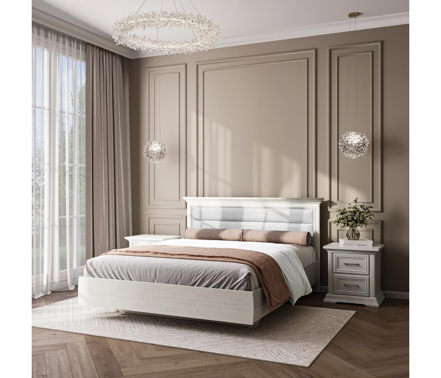 Кровать без ножной спинки Лоренцо пудра (спальное место 1600х2000 мм) изготовлена с использованием массива дуба и шпона ясеня в цвете «пудра». Кровать может комплектоваться основанием с механизмом подъема и бельевыми ящиками.