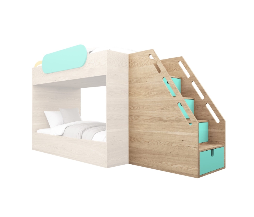 Габариты внешние: 142х64х96смФасад: Фанера в эмали Корпус: Фанера в шпоне дуба. Покрытие лакФурнитура: Blum (Австрия) с отталкивателемСрок изготовления: 30 рабочих дней Лестница с ящиками – это не просто удобный способ забраться на кровать, но и эргономичный способ хранения вещей. Наши лестницы изготовлены из прочной фанеры в дубовом шпоне, наружная отделка имеет текстуру натурального дерева. Фасад ящиков покрыт эмалью с 22 цветовыми опциями на выбор.Лестницы оснащены перилами, чтобы подъем на верхний ярус был безопасным и комфортным для ребенка. Опции соединения лестниц с кроватью:- Прямая (присоединяется к торцу наподобие трапа)- Правая (располагается с правой стороны кровати)