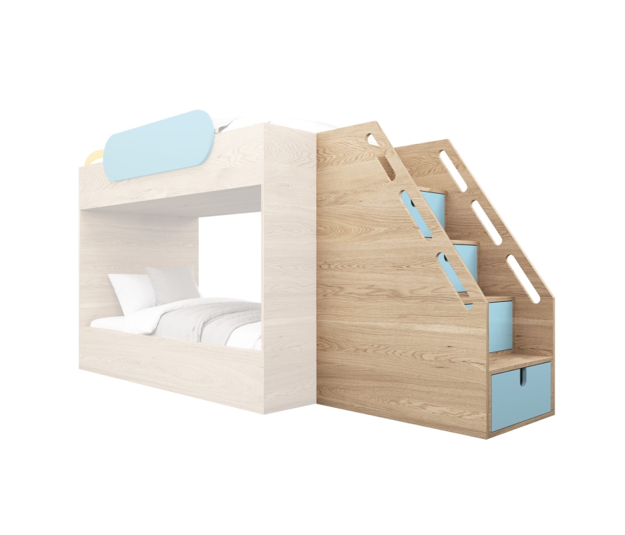 Габариты внешние: 142х64х96смФасад: Фанера в эмали Корпус: Фанера в шпоне дуба. Покрытие лакФурнитура: Blum (Австрия) с отталкивателемСрок изготовления: 30 рабочих дней Лестница с ящиками – это не просто удобный способ забраться на кровать, но и эргономичный способ хранения вещей. Наши лестницы изготовлены из прочной фанеры в дубовом шпоне, наружная отделка имеет текстуру натурального дерева. Фасад ящиков покрыт эмалью с 22 цветовыми опциями на выбор.Лестницы оснащены перилами, чтобы подъем на верхний ярус был безопасным и комфортным для ребенка. Опции соединения лестниц с кроватью:- Прямая (присоединяется к торцу наподобие трапа)- Правая (располагается с правой стороны кровати)