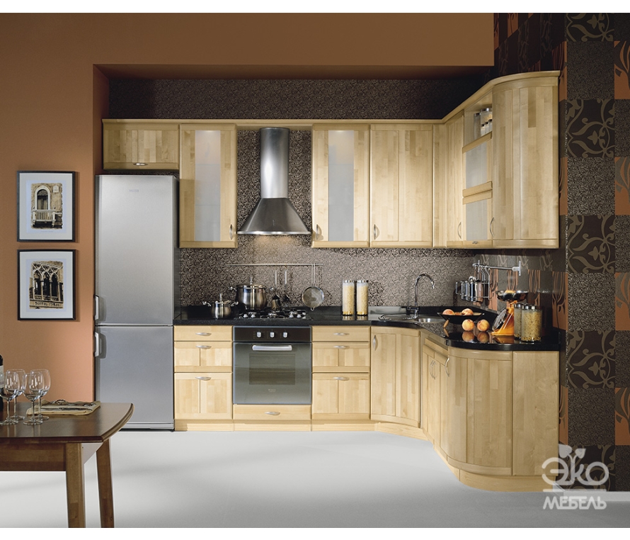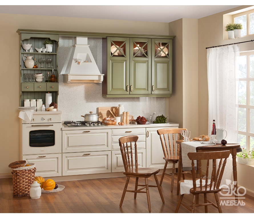 Кухня "Элина" создаст уютный и функциональный интерьер в Вашем доме. Ее фасады обработаны грунтовыми составами с добавлением пигментов, а также патиной, нанесенной вручную. В кухне "Элина" из массива используются березовые рамки классической формы, имеющие лаконичный, сдержанный дизайн. Украшением гарнитура могут стать витражные стекла. Открытые элементы придают кухне "Элина" нотки легкости и настоящего домашнего юта. В предметном ряду данной модели представлено более 1000 модулей различной конфигурации. Широкие возможности для хранения кухонной утвари и хозяйственных мелочей создают многофункциональные настольные блоки, пеналы и витрины. Корпус кухни «Элина» может быть изготовлен как из ДСП 18 мм, так и 100% массива березы.
