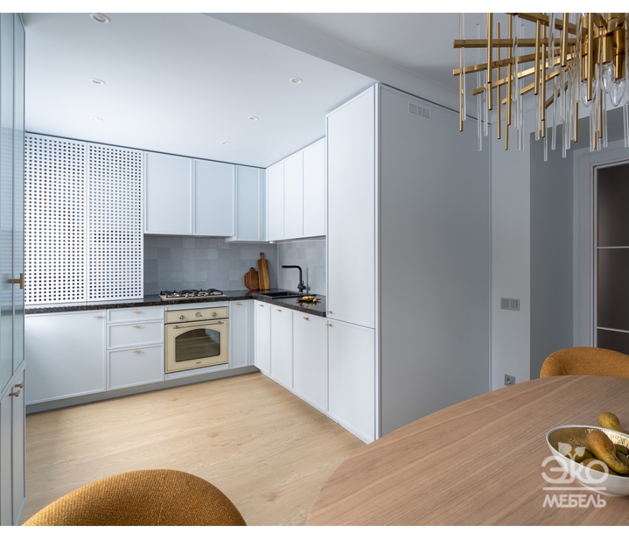Эта кухня стала главной героиней программы "Квартирный вопрос " от 24.02.2024 г.! Переделка состоялась в квартире творческой семьи, к которым часто приезжают в гости друзья и родные. Была проделана большая кропотливая работа с цветом, освещением и архитектурой. В итоге просторная 17-ти метровая кухня превратилась в своеобразную "Солнечную систему ", став центром притяжения для всех. Кухонный гарнитур "Камилла "занял две стены. Каркасы всех элементов выполнены из ламинированной ДСП, фасады – из крашеной МДФ. Индивидуальный выкрас дизайнер подобрала в тон к общему интерьеру. Корпус изготовлен из ДСП европейского класса безопасности Е1, что гарантирует безопасность для здоровья и долгий срок службы. На кухне было предусмотрено множество "умных " систем хранения. Это и выдвижные ящики, и вместительные полки, и практичная выдвижная бутылочница. Все механизмы от ведущих европейских производителей, оснащены доводчиками, обеспечивающими плавное и бесшумное закрывание ящиков и дверок.