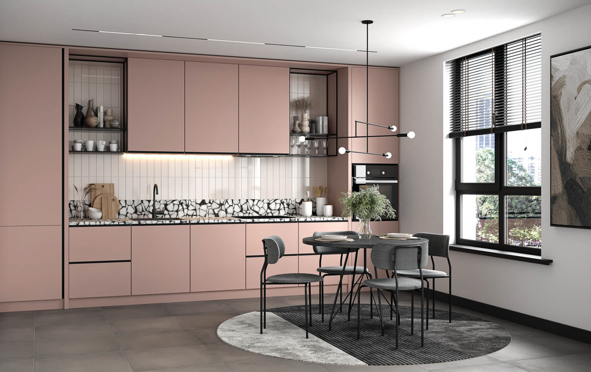 Кухня "Камилла" в приятном оттенке "Зеленое яблоко" приглашает нас окунуться в гармонию с природой и отдохнуть от городской суеты. Мебель, сделанная из натуральных материалов, великолепно дополняет уютный интерьер. Стол и стулья выполнены в современном минималистичном стиле и расставлены так, чтобы создать комфортное функциональное пространство.