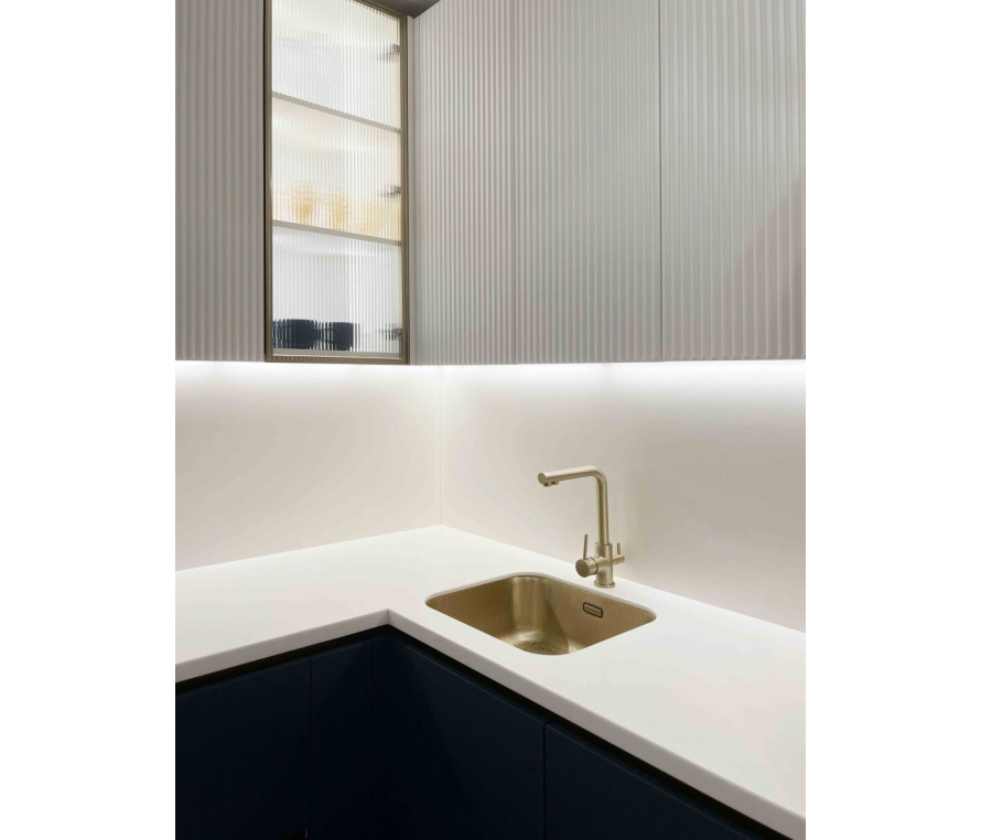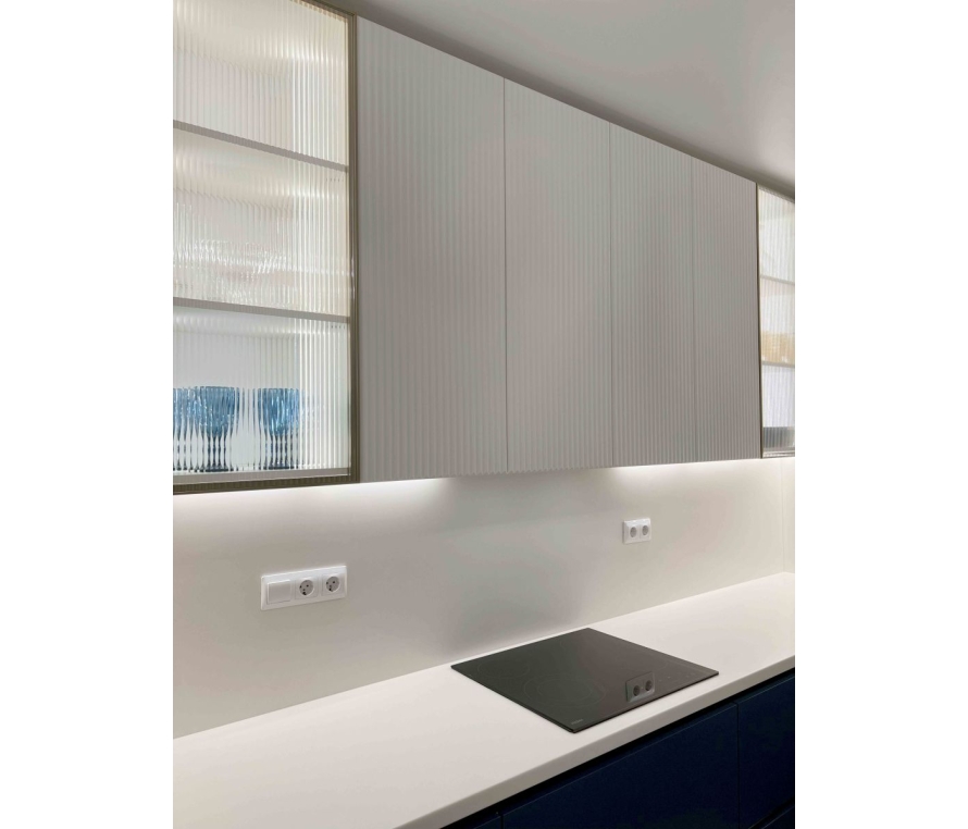 Индивидуальная угловая кухня на заказ от производителя — идеальное решение для вашего дома. Мы создаем кухни по вашим точным размерам, чтобы максимально эффективно использовать пространство и подчеркнуть стиль интерьера. В комплект входит прочная столешница и фартук из искусственного материала, обеспечивающих долговечность и легкость в уходе. Фасады выполнены из МДФ с эмалью Вельвет, оснащены интегрированными ручками для современного и минималистичного дизайна. Витрина с профилем Золото и прозрачным стеклом Moru ультра, с системой открывания Tip-On, добавит элегантности и функциональности. Дополнительная подсветка фартука и витрин создаст уютную атмосферу и подчеркнет красоту вашей кухни. Закажите уникальную кухню по индивидуальным размерам и наслаждайтесь качеством и стилем от ведущего производителя. *Указана минимальная стоимость изделия без учета стоимости услуг и бытовой техники.
