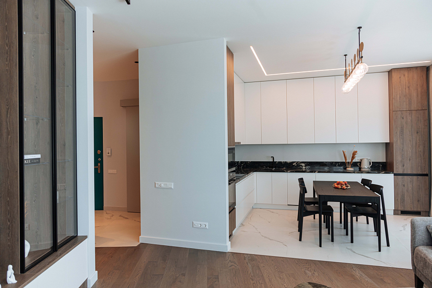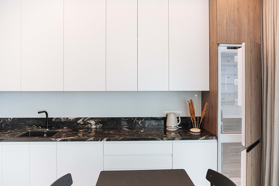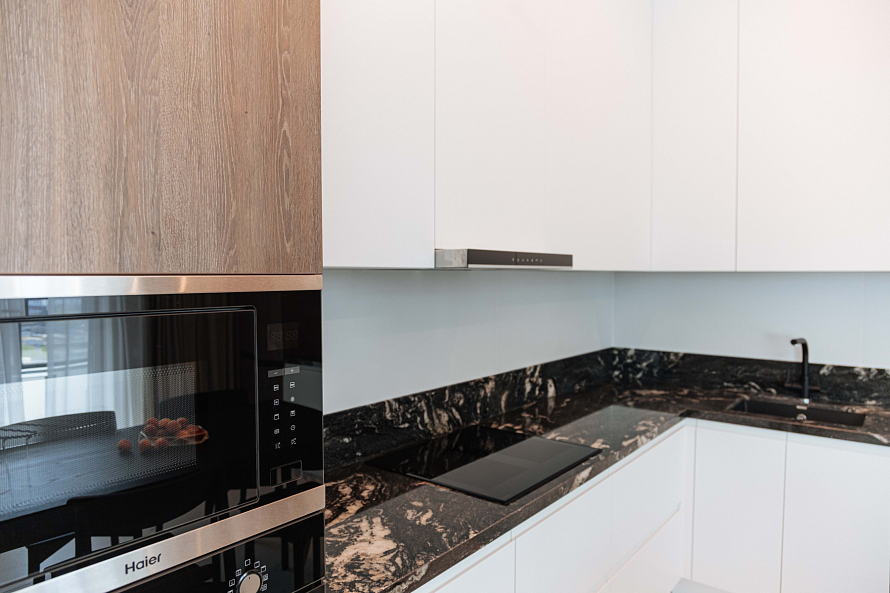 Ищете идеальную кухню, которая будет сочетать в себе функциональность, стиль и долговечность? Тогда наша угловая кухня - это то, что вам нужно! Мы предлагаем вам уникальную возможность создать кухню вашей мечты, которая будет соответствовать всем вашим требования и пожеланиям. Наша компания является производителем кухонной мебели, поэтому мы можем предложить вам широкий выбор метариалов, декоров и наполнения. Особенности угловой кухни с глухими фасадами: встроенная техника, которая позволит вам сэкономить место и создать гармоничный интерьер; столешница из гранита толщиной 40 мм, которая отличается высокой прочностью и устойчивостью к царапинам; глухие фасады из МДФ, которые обеспечивают долговечность и легкость ухода. Мы готовы воплотить в жизнь любые ваши идеи и создать кухню, которая будет радовать вас каждый день. Свяжитесь с нами сегодня, чтобы узнать больше о наших услугах и ценах. Не упустите возможность создать кухню своей мечты! Посмотреть весь проект *Указана минимальная стоимость изделия без учета стоимости услуг и стоимости каменной столешницы.