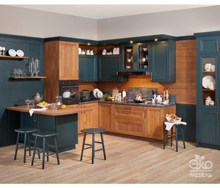 Интерьер в современном стиле многоликий. Он может иметь разные проявления, которые понравятся активным людям, живущим в ритме мегаполиса. Но в суете и ежедневной спешке иногда хочется отдохнуть в уютной обстановке, и кухня становится одним из главных мест для этого. Гарнитур "Стелла" в неоклассическом стиле – прекрасный вариант обустройства современной кухни. Применение массива березы или дуба с бархатистой поверхностью для фасадов создает обстановку благородства, а строгость и симметричность форм корпусов добавляют нотки сдержанности. Максимальное проявление роскоши Вас ждет в ЭКО-исполнении гарнитура, в котором корпуса также изготавливаются из массива дуба или березы. Среди черт неоклассицизма стоит отметить применение стеновых панелей в цвет фасада, группы витрин с бронзовым стеклом и стола-острова, расширяющего функциональность кухни "Стелла".