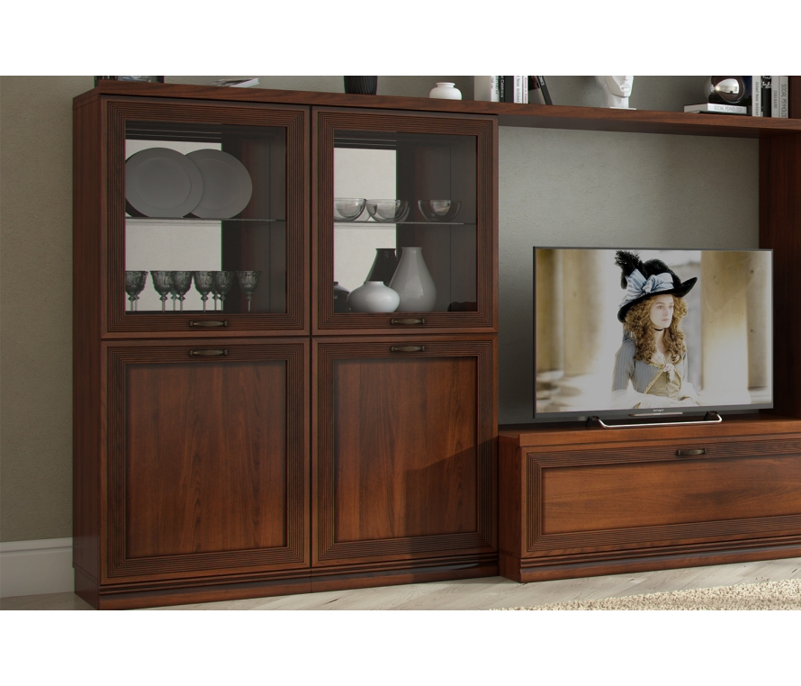 Характеристики:Шкаф многоцелевого назначения на регулируемых опорах с двумя отделениями по высоте;Цвет: клен старый;Цвет внешней фурнитуры: старая бронза;Нижнее отделение — с полкой ЛДСП за глухой рамочной дверью, верхнее отделение — со стеклянной полкой за рамочной дверью со стекловставкой;На задней стенке верхнего отделения — зеркало с декоративным профилем по верхнему краю;Двери можно установить на правую или левую сторону;Отдельно стоящий шкаф необходимо прикрепить к стене для устойчивости и предотвращения опрокидывания при открывании дверей.Материалы:Корпус: ЛДСП;Фасады: рамочной конструкции из гребенчатого профиля МДФ, окутанные бумагой с «финиш-эффектом»;Отделка фасадов выполнена испанским акриловым лаком и патиной (эффект состаренного дерева);Для облицовывания кромок деталей используется высококачественный материал производства Германии, Австрии;Регулируемые металлические опоры скрыты декоративным цоколем из профиля МДФ;Внешняя фурнитура: латунь;Крепежная фурнитура: Titus, Hettich;Петли на дверях с доводчиком.