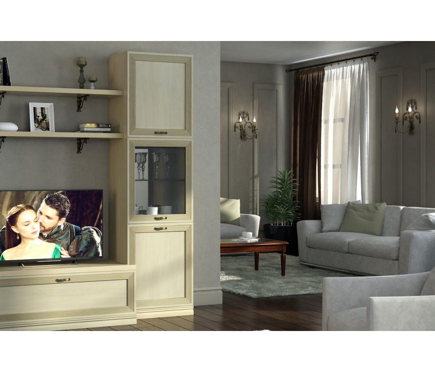 Характеристики:Цвет: валенсия;Цвет внешней фурнитуры: старая бронза;Шкаф многоцелевого назначения на регулируемых опорах;Нижнее и верхнее отделение — с полкой ЛДСП за глухой рамочной дверью, среднее отделение — со стеклянной полкой за рамочной дверью со стекловставкой;На задней стенке среднего отделения — зеркало с декоративным профилем по верхнему краю;Двери можно установить на правую или левую сторону;Отдельно стоящий шкаф необходимо прикрепить к стене для устойчивости и предотвращения опрокидывания при открывании дверей.Материалы:Корпус: ЛДСП;Фасады: рамочной конструкции из гребенчатого профиля МДФ, окутанные бумагой с «финиш-эффектом»;Отделка фасадов выполнена испанским акриловым лаком и патиной (эффект состаренного дерева);Для облицовывания кромок деталей используется высококачественный материал производства Германии, Австрии;Металлические опоры скрыты декоративным цоколем из профиля МДФ;Внешняя фурнитура: латунь;Крепежная фурнитура: Titus, Hettich;Петли на дверях с доводчиком.
