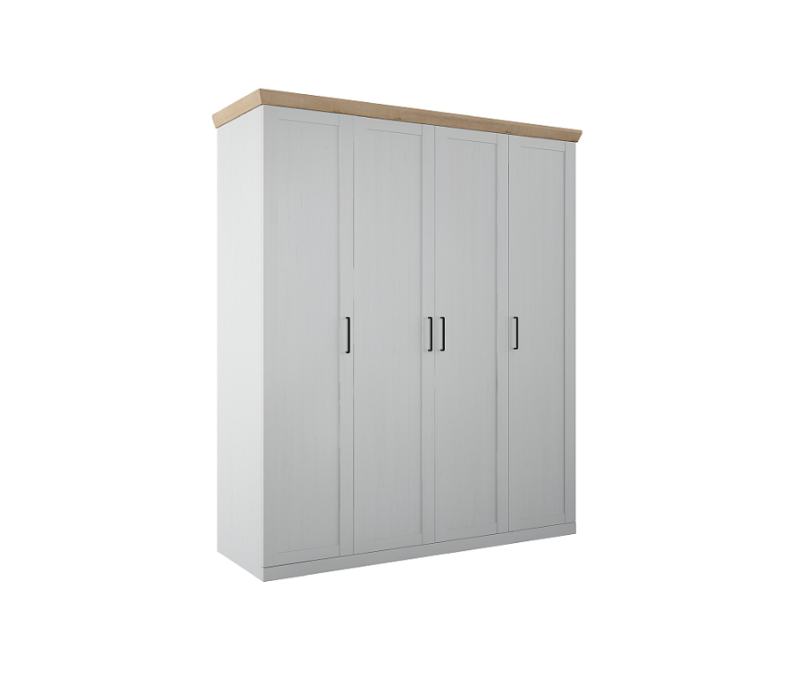 Вместительная модель с покрытием цвета «блан-шене» станет настоящим подарком для тех, кто давно мечтает о своей гардеробной. Платяной шкаф подойдет для минималистичной спальни или гостиной в современном оформлении. Изящный скошенный карниз в оттенке «дуб бунратти», лаконичные филенки и тонкие ручки-скобы, стилизованные под «античное железо черное», делают внешний облик мебели аккуратным и завершенным. Опорная часть замаскирована цоколем, выполненным в основном тоне.Две дверцы «Магнум» открываются на левую сторону, а еще две — на правую. Внутри модель состоит из трех секций, в каждой из которых расположена продольная штанга и верхняя полка для головных уборов. В боковые отсеки можно дополнительно вместо штанг установить по четыре типовых полки.Цельную конструкцию крепят к стене во избежание смещения или опрокидывания. Для данного изделия доступны доставка и сборка на месте с последующей установкой.Характеристики:В левую и правую секции шкафа можно установить дополнительно по 4 полки ЛДСП (4 модуля МГ-009.00);Каждая секция укомплектована полкой и штангой для навешивания одежды;Цвет: блан-шене, дуб бунратти;Двери рамочные (со вставкой ЛДСП 8 мм);Отдельно стоящий шкаф необходимо крепить к стене во избежание опрокидывания.