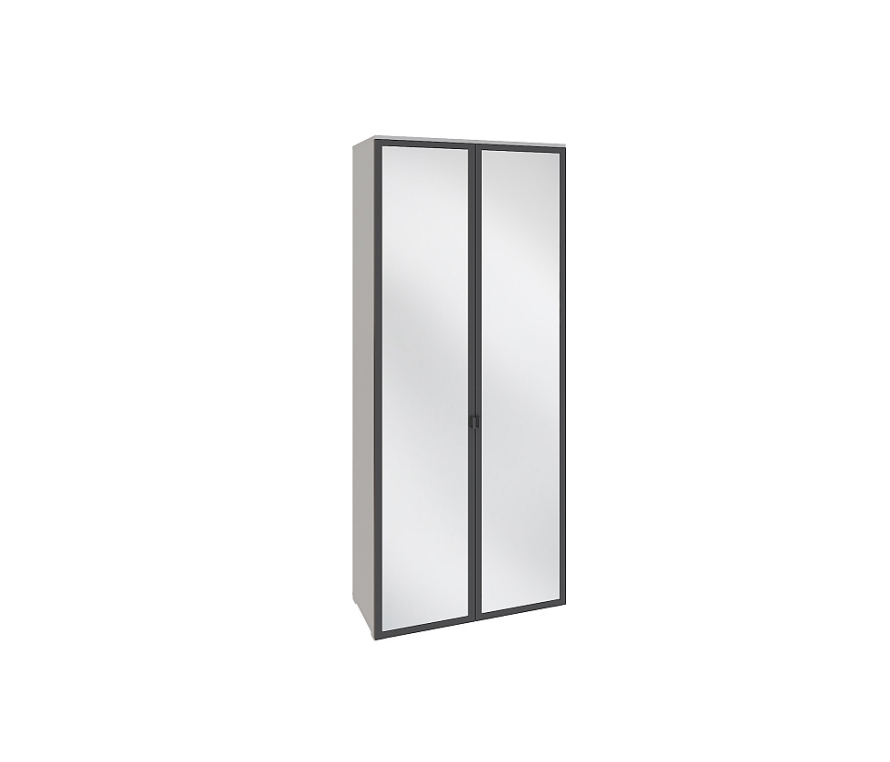 Характеристики:Цвет: белый премиум;Цвет ручек: чёрный матовый;Наполнение шкафа: отделение для одежды с выдвижной штангой и полкой над ней и узкое отделение с полками;Шкаф установлен на опорах, регулируемых по высоте.Материалы:Каркас: ЛДСП 16 мм;Фасады: рамочной конструкции из профиля МДФ, окутанного бумагой серого цвета с зеркальной вставкой;Фасады укомплектованы петлями МакМарт с доводчиками;Ручки: металл.