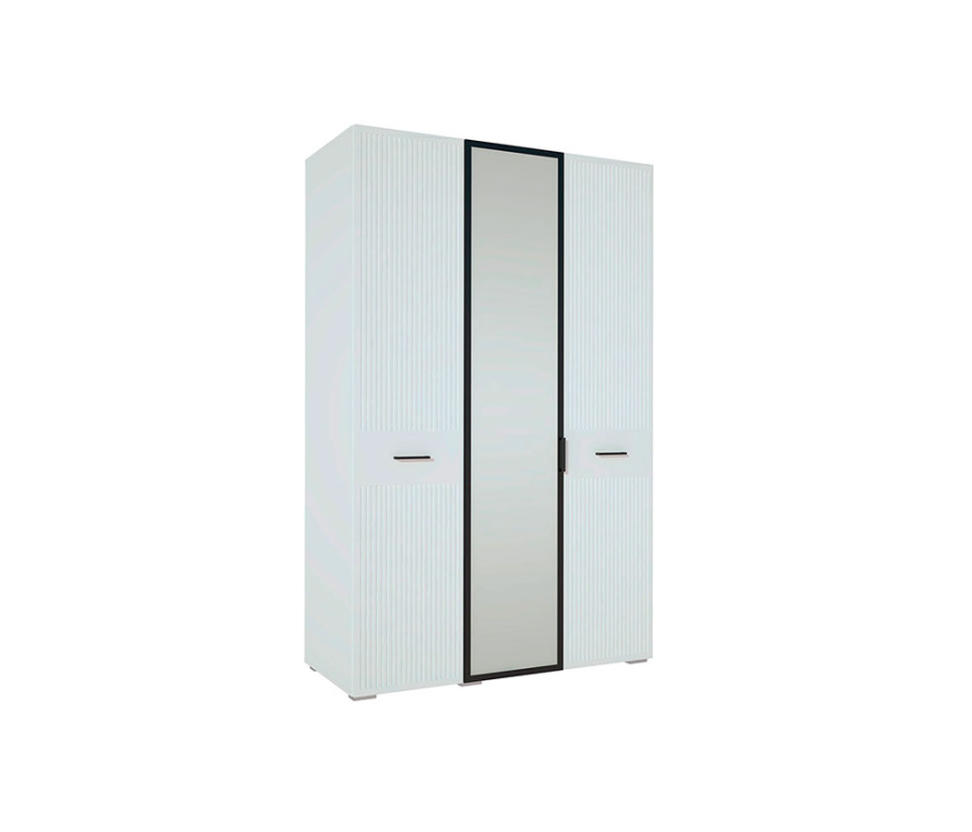 Характеристики:Цвет: белый премиум;Цвет ручек: чёрный матовый;Шкаф необходимо крепить к стене во избежание опрокидывания;Шкаф укомплектован полками и штангой для белья;Шкаф можно заказать в цвете «кашемир серый».Материалы:Каркас: ЛДСП 16 мм;Центральный фасад: профиль МДФ, окутанный серой бумагой «графит», вставка — зеркало пепельного оттенка «графит»;Два боковых фасада: МДФ с декоративной фрезеровкой в виде вертикальных полос и окутаны плёнкой ПВХ;Фасады укомплектованы петлями МакМарт с доводчиками;Ручки: металл;Шкаф установлен на пластиковых опорах высотой 2 см, регулируемых по высоте.