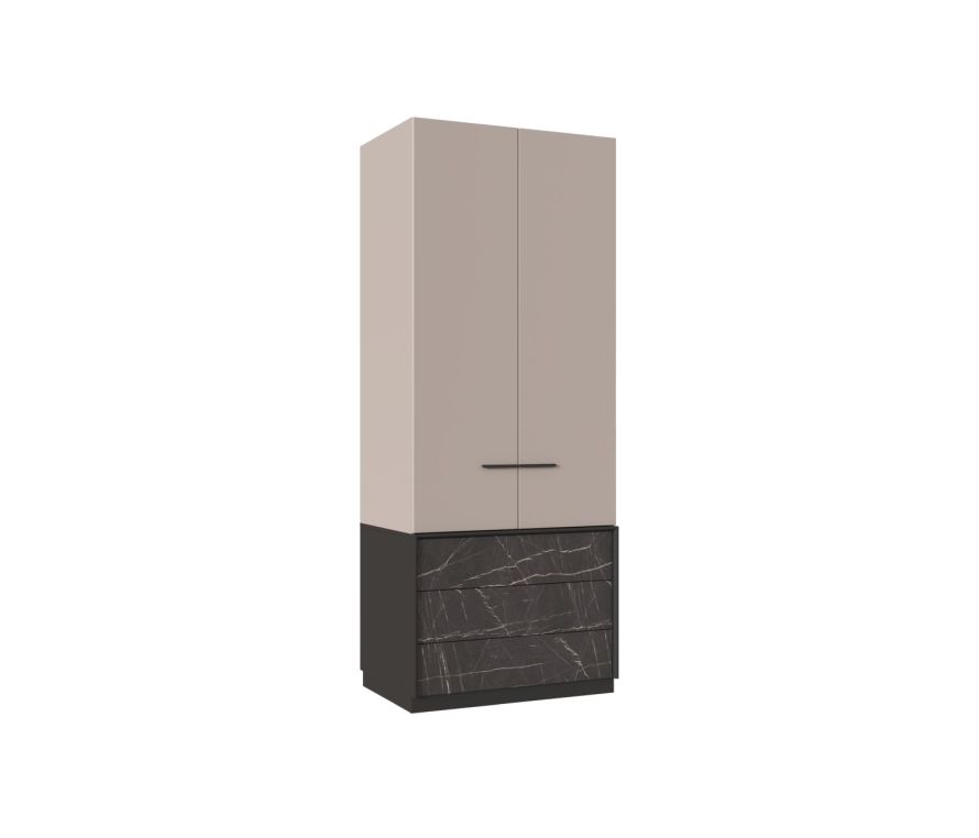 Характеристики:Шкаф двухдверный с одной полкой ЛДСП и тремя выдвижными ящиками;В комплекте штанга для одежды;Можно дополнительно приобрести комплект полок МИ-011.07;Максимальная нагрузка на ящик – не более 6 кг.Материалы:Корпус: ЛДСП 16 и 22 мм;Фасады: МДФ 19 мм в пленке ПВХ;Кромочный материал: ПВХ толщиной 0,4 и 2 мм на видимых торцах щитовых деталей, меламиновый — на невидимых;Крепежная фурнитура и механизмы ведущих производителей;Петли Sensys в цвете черный обсидиан с доводчиком;Направляющие на ящиках скрытого монтажа Слорос с доводчиком.Милагро — стиль и элегантность в каждой детали.Коллекция в стиле минимализм с элементами изящных линий лицевой фурнитуры и акцентами черного мрамора. Олицетворяет собой простоту и элегантность. Элементы этой коллекции были тщательно разработаны, чтобы создать гармоничный образ Вашего интерьера, где важны не только функциональность и практичность, но и эстетика.Серый цвет фасадов придает коллекции сдержанность и спокойствие, а черный мрамор добавляет изысканности и роскоши. Мебель из этой коллекции выполнена из высококачественных материалов, что гарантирует ее долговечность и надежность.Она идеально подойдет для тех, кто ценит простоту, элегантность и функциональность. Каждый предмет мебели в этой коллекции создан с использованием высококачественных материалов и тщательно продуманных деталей.Все модули гармонично сочетаются друг с другом. Черный акцентный мрамор добавляет коллекции изысканности и роскоши, а выразительная геометрия тонких черных ручек на фасадах, перетекающая в линию опор, придают ей современный вид.
