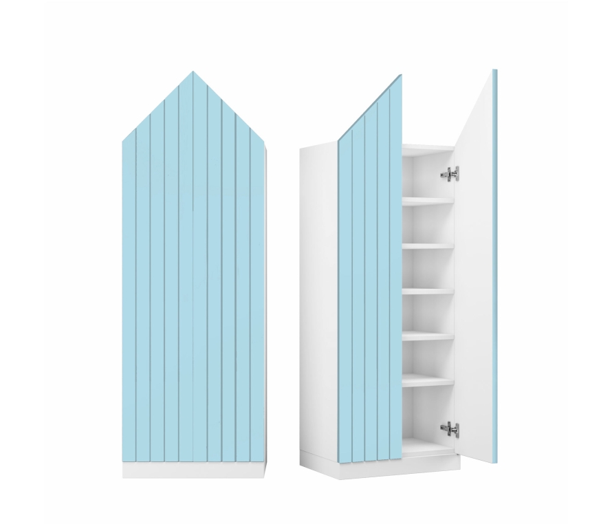 Характеристики:Угловой шкаф для одежды с двумя отделениями;В большом отделении — штанга для одежды, в малом отделении — пять полок для белья;Цвет корпуса: швейцарский вяз;Цвет фасада: белый матовый;Cкрытая эргономичная ручка, выполненная посредством фрезеровки фасада;Регулируемые опоры;Дверь может быть установлена с открыванием в любую сторону (для этого на корпусе есть дополнительные отверстия).Материалы:Корпус: ЛДСП 16 и 22 мм класса эмиссии Е1;Фасад: МДФ 19 мм в пленке ПВХ;Задняя стенка: ДВП;Для облицовывания кромок деталей используется высококачественный материал от ключевых производителей;Для шкафа используется крепежная фурнитура и механизмы ведущих производителей.