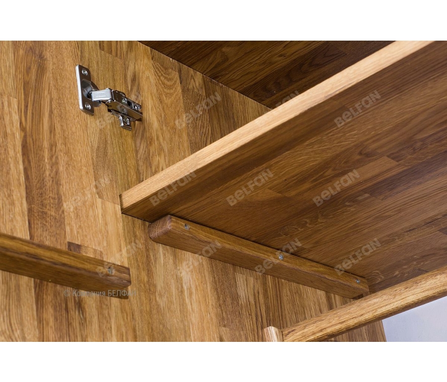 Особенности духдверного шкафа для одежды «Норд» (Nord): ? Шкаф изготовлен из 100% массива дуба. ? Современный стиль – экоминимализм. ? Безупречный минималистичный дизайн, который идеально подойдет для квартирного и загородного решения. ? Прямые скруглённые формы идеально дополнят любой современный интерьер. ? Цельные скругленные стойки боковины шкафа из благородного массива дуба, которые придают формам мягкость и утонченность. ? Гладкие фасады без лицевой фурнитуры с интегрированными горизонтальными вставками дерева создают безупречное дизайнерское решение. ? Ярко-выраженный природный рисунок натурального дерева, искусно подобранный мастерами вручную. ? Внутреннее наполнение шкафа позволяет аккуратно распределить все вещи и поддерживать порядок в нем. ? Легкое открывание дверей шкафа за счет механизма Push to open от известного австрийского производителя BLUM, который активируется путем нажатия на фасад двери. ? Экологичная отделка: натуральный дуб пропитан бейц маслом (европейского пр-ва) на натуральной основе. На поверхности образуется защитная гидрофобная пленка, благодаря которой покрытие впитывается в структуру дерева, придавая дереву стойкую защиту и подчеркивает природную красоту рисунка. Мебель из массива дерева необыкновенно красива, добротна и славится своим долголетием. Однако, чтобы продлить этот срок, сохранить мебельным изделиям первоначальную элегантность и отличный внешний вид, за ней необходим надлежащий уход. Если у вас появились царапины, следы от кружки или мокрой тряпки, то сервис-бокс от компании BELFAN поможет вам вернуть мебели первозданный вид даже в домашних условиях. Данный сервис-бокс подходит только для мебели в крашении бейц-масло. Схема шкафа: