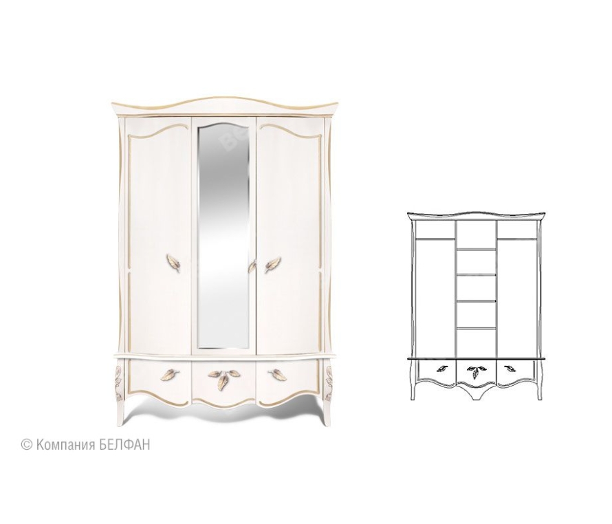 Шкаф для одежды 3-х дв. "Трио" (распашной); белая эмаль с золотой патиной